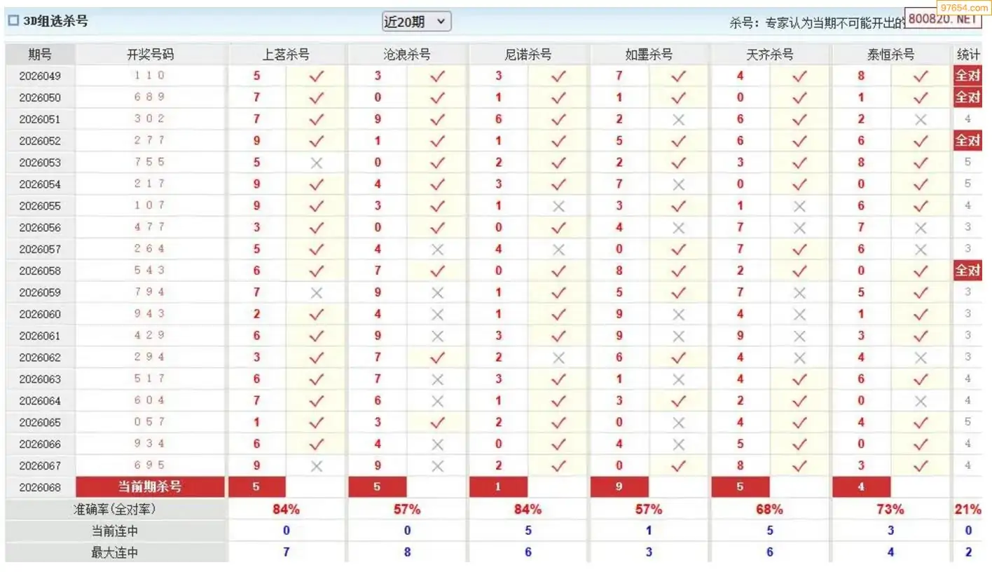 妙手068期今晚3d杀号预测 6连中