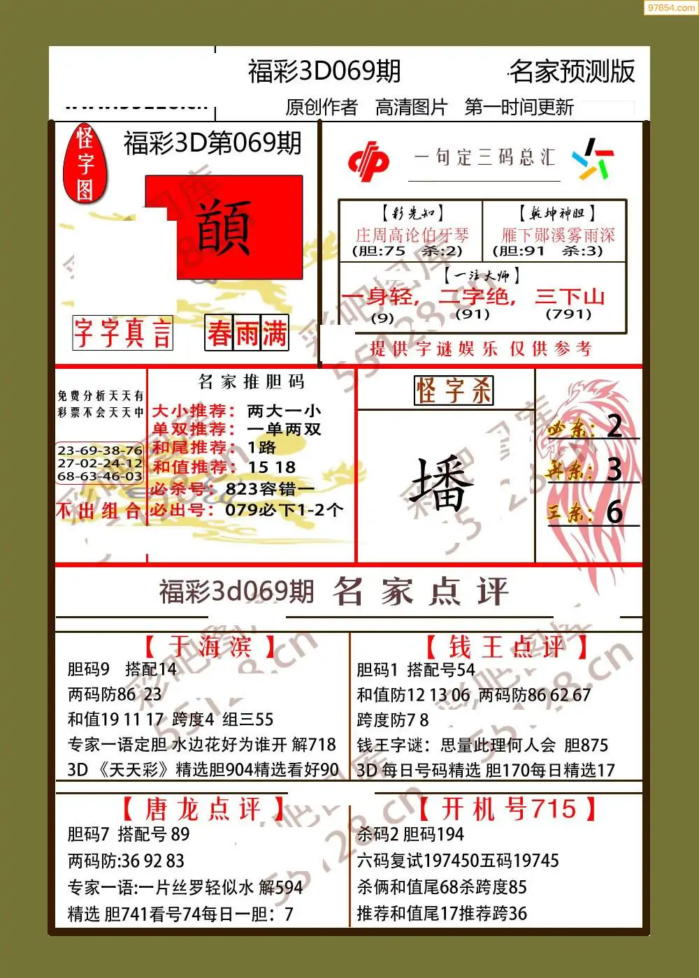 26年069期3D各板块资料整合汇总