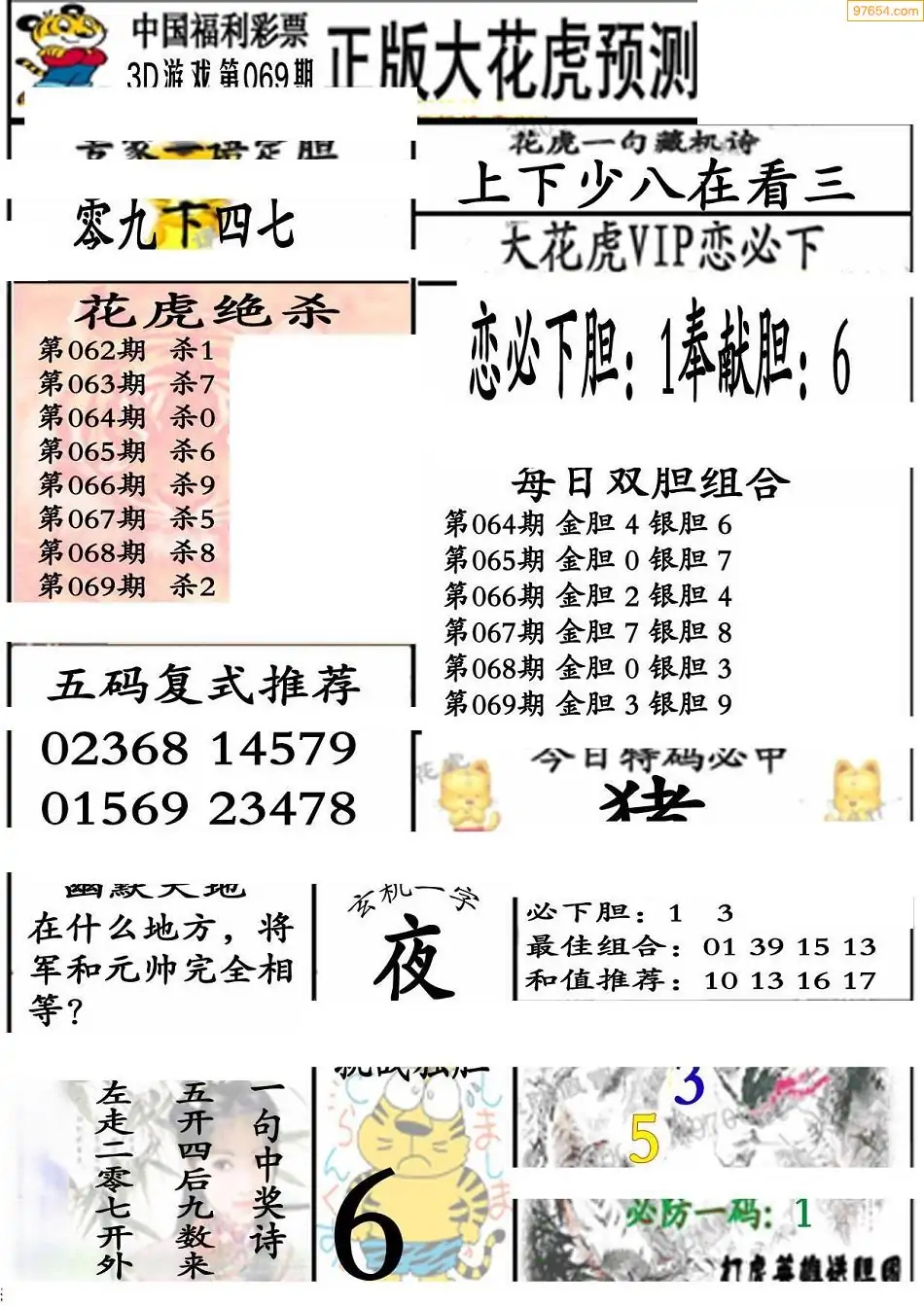 069期3D牛彩预测报+彩吧字谜报