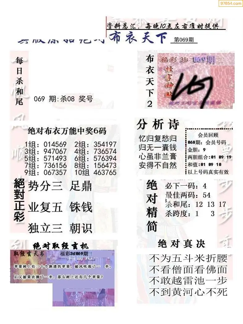 福彩069期3d真精华布衣+布衣早报(转载)