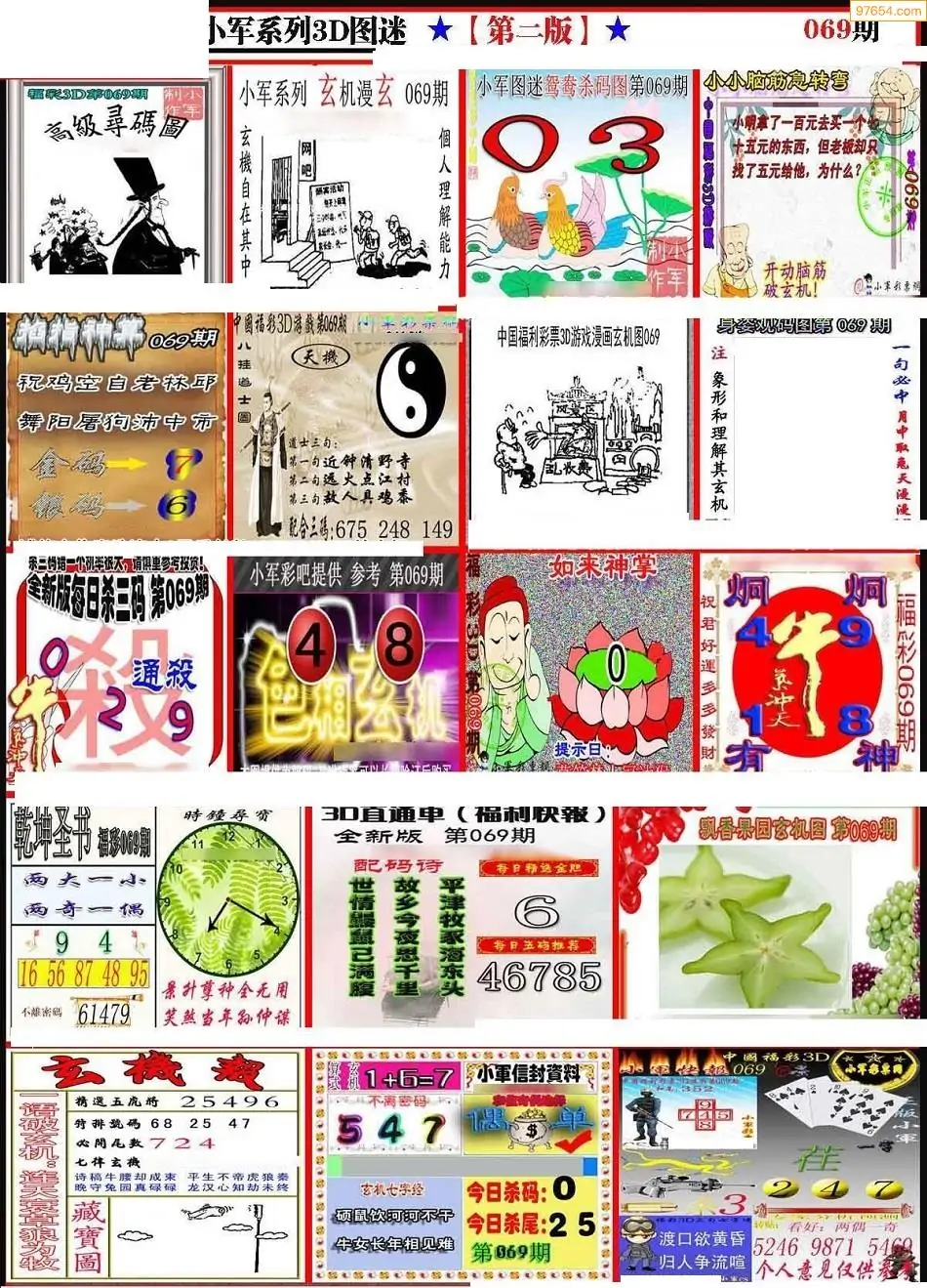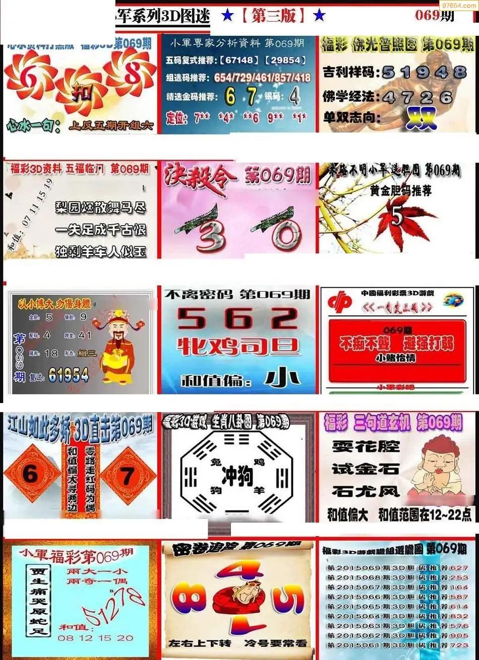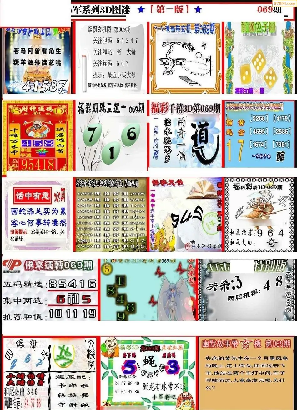 069期3D牛彩预测报+彩吧字谜报