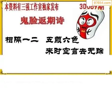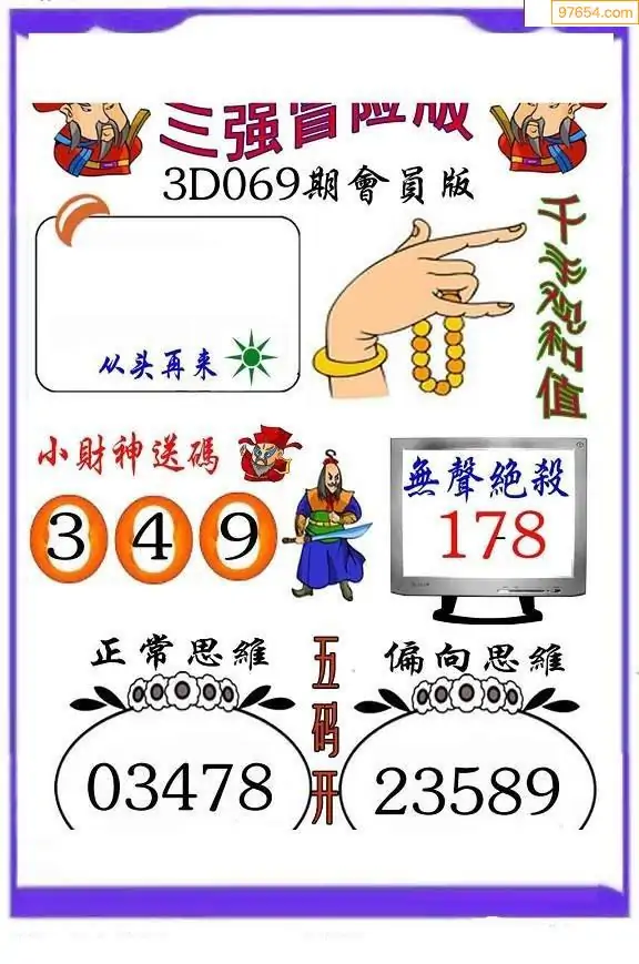 069期3D牛彩预测报+彩吧字谜报