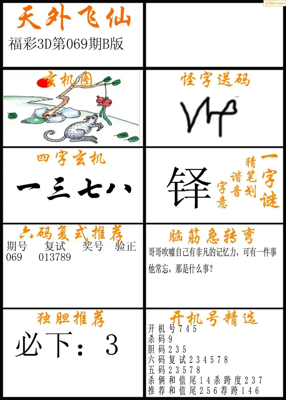 069期福彩3d天外飞仙B版