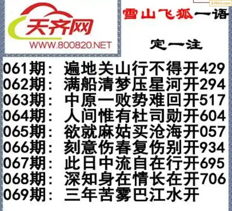 2026069期3d字谜汇总(晚间版)_天齐网福彩3D字谜