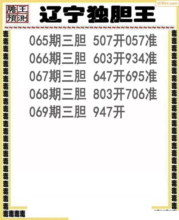 069期97654本站收集胆码出号预测