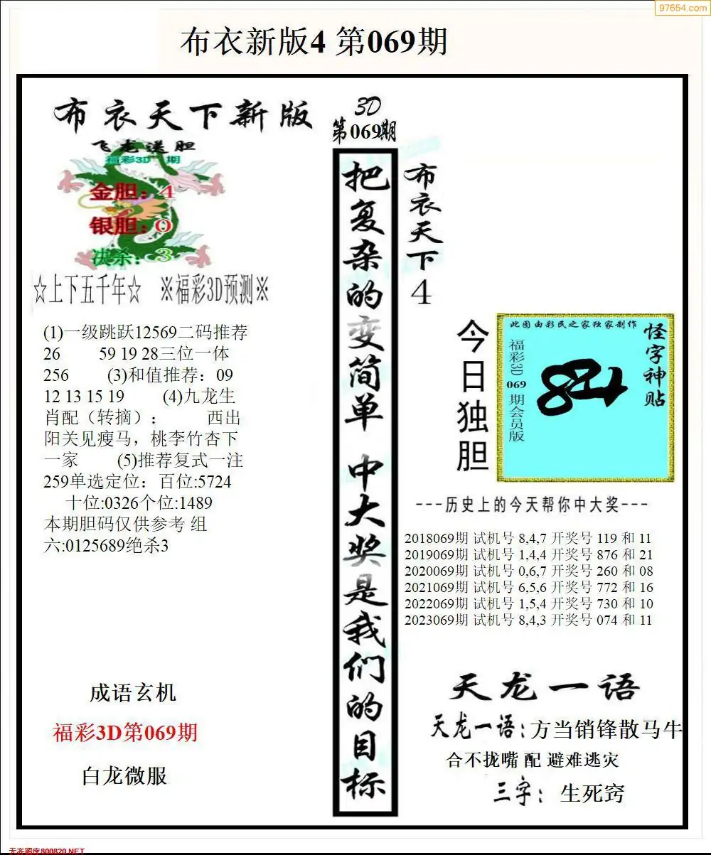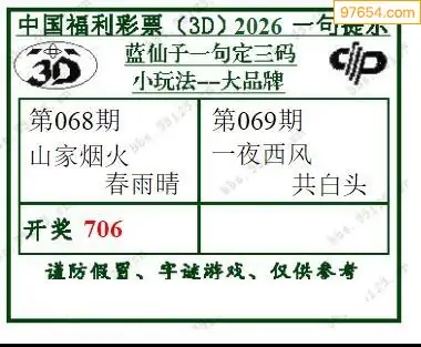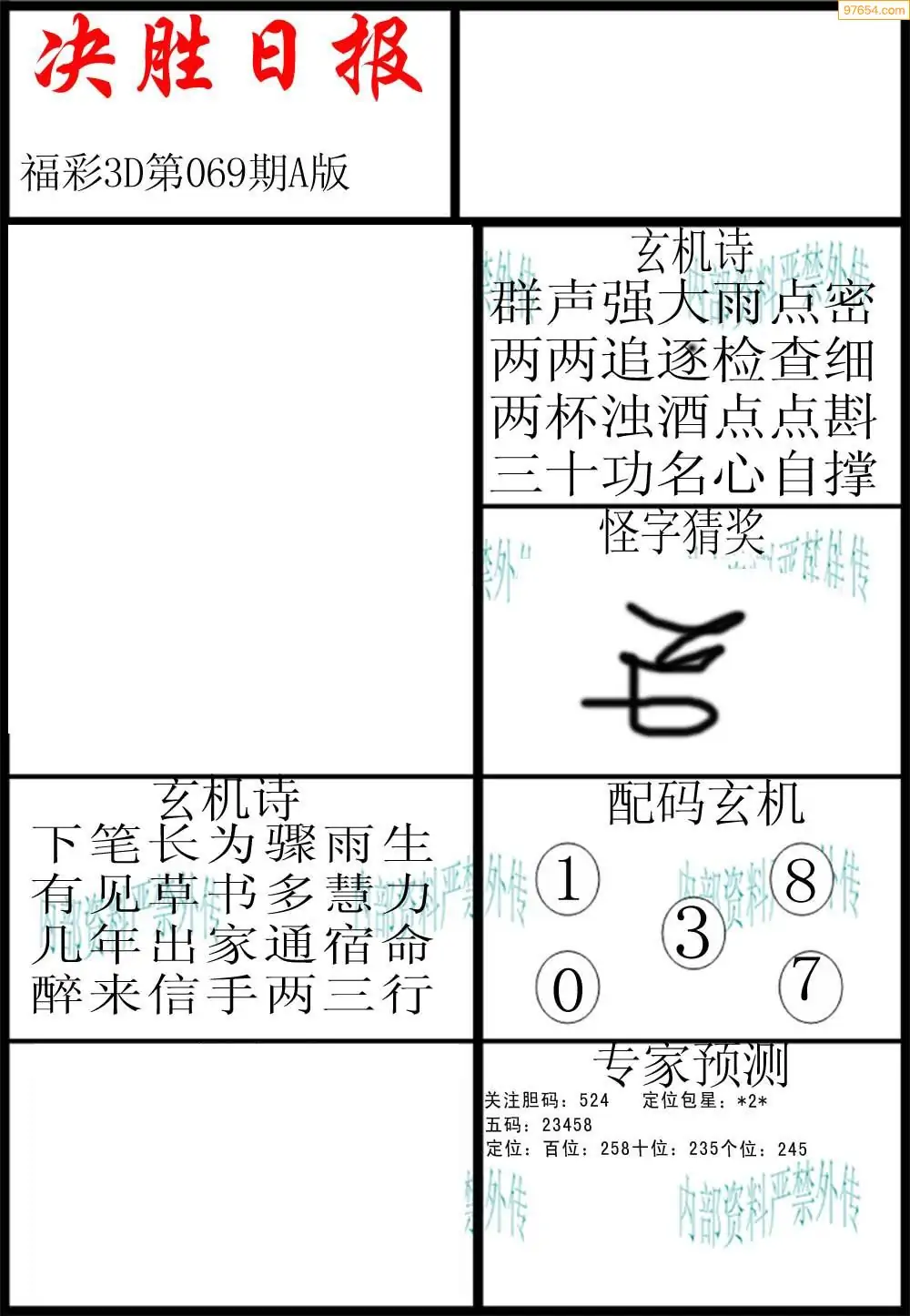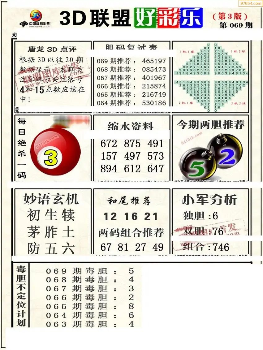 (8)26年069期今日3d各类彩报汇总