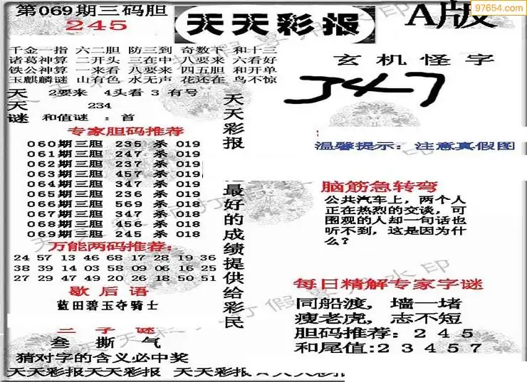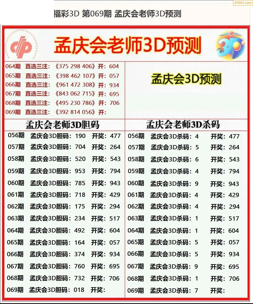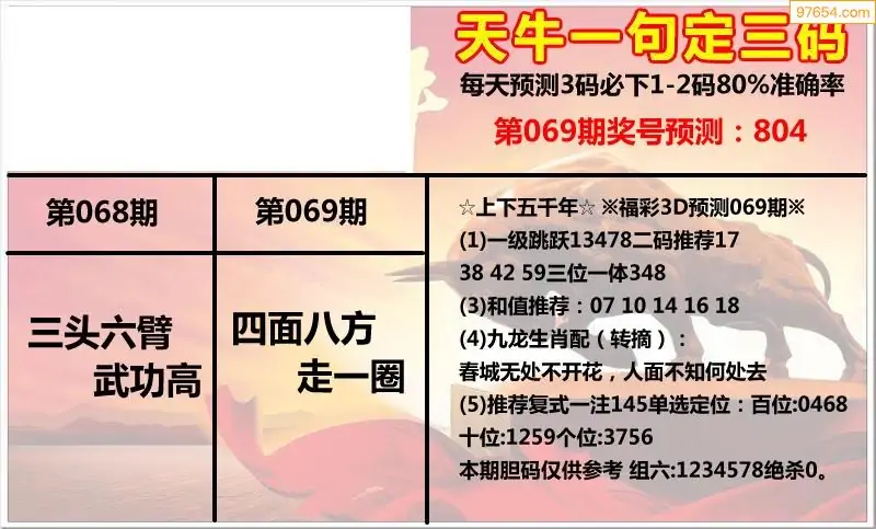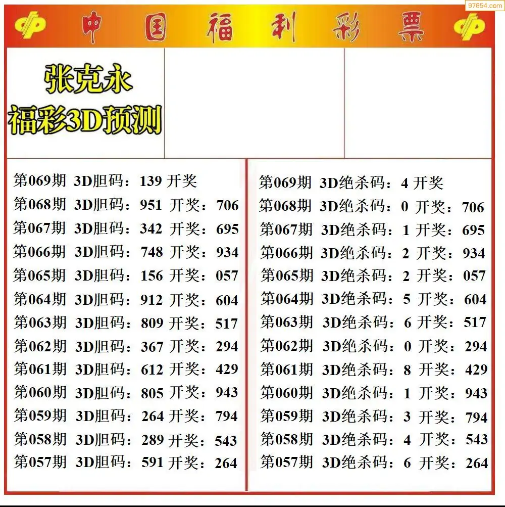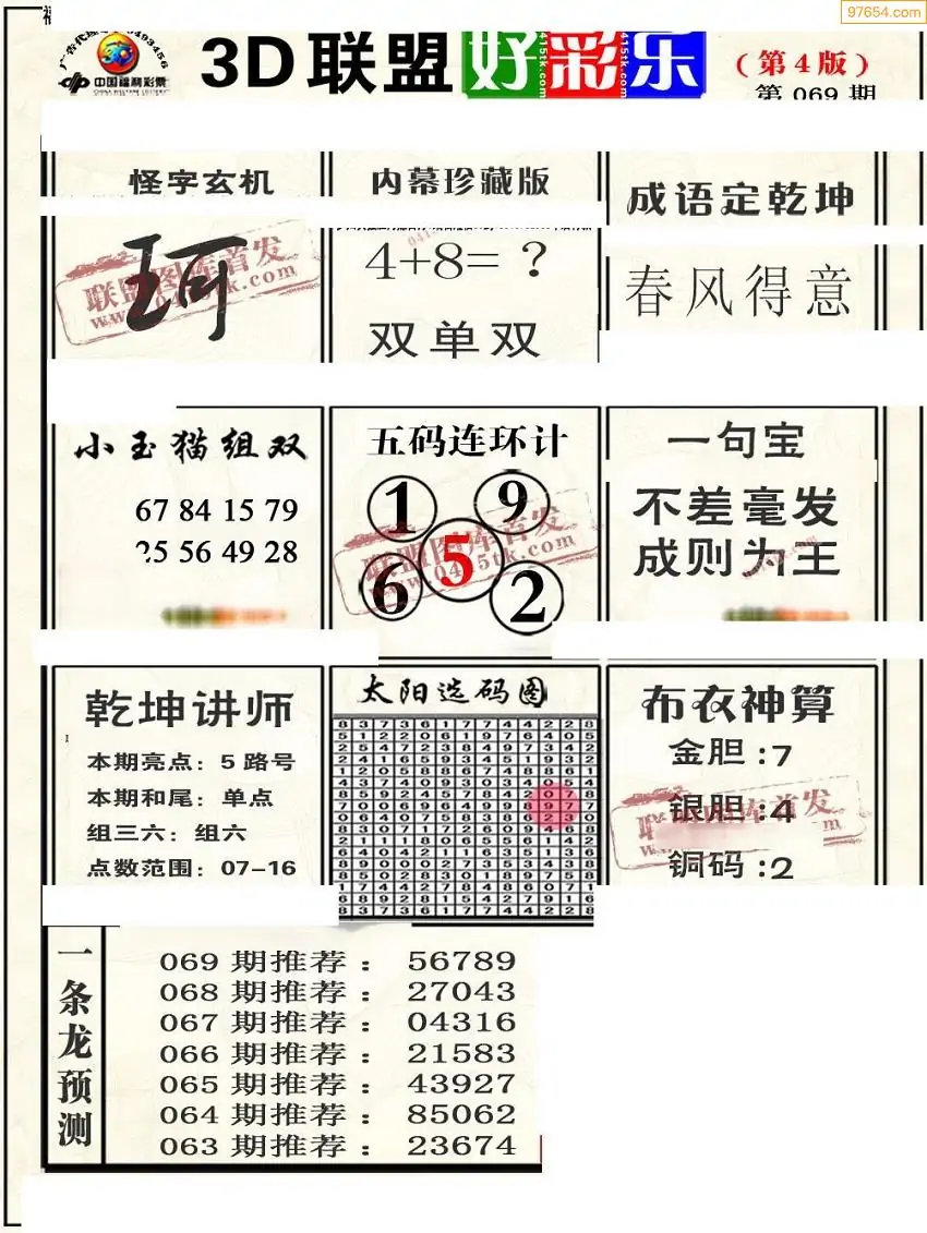 (8)26年069期今日3d各类彩报汇总
