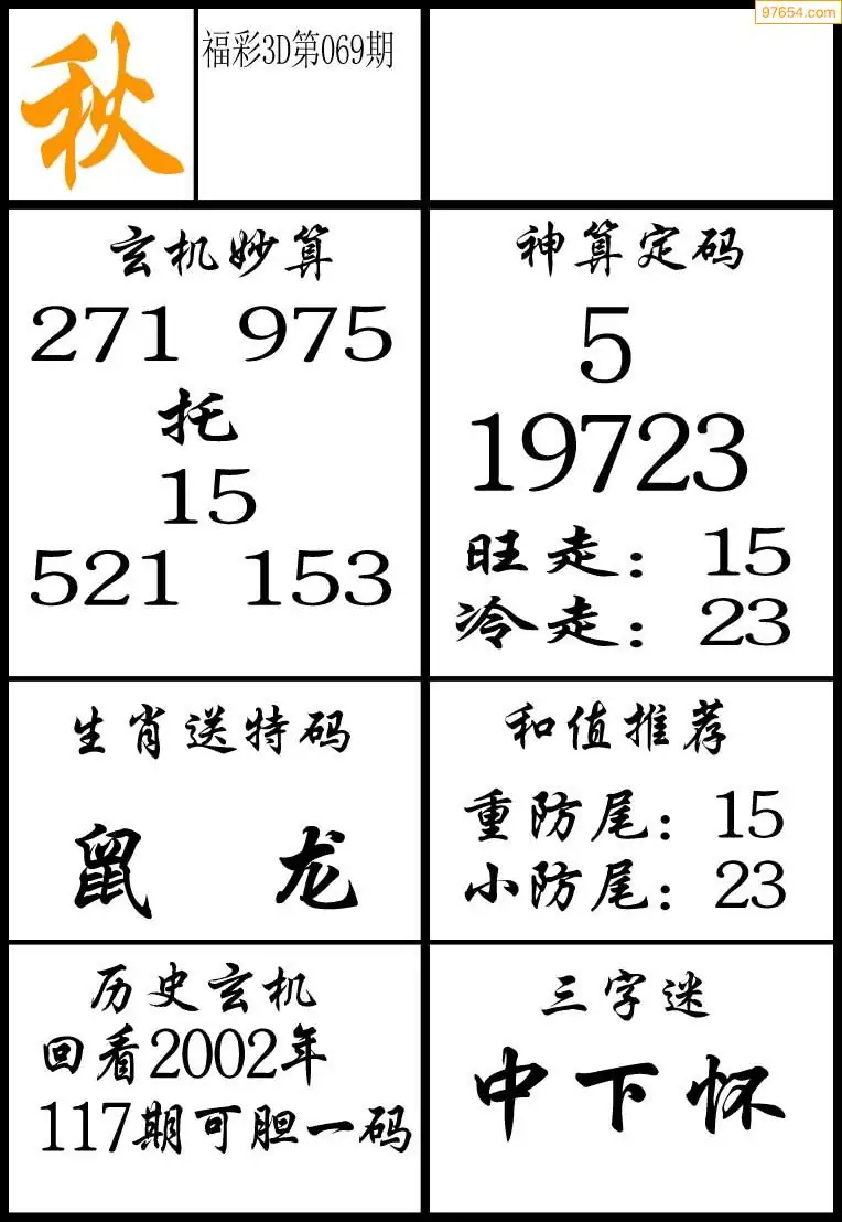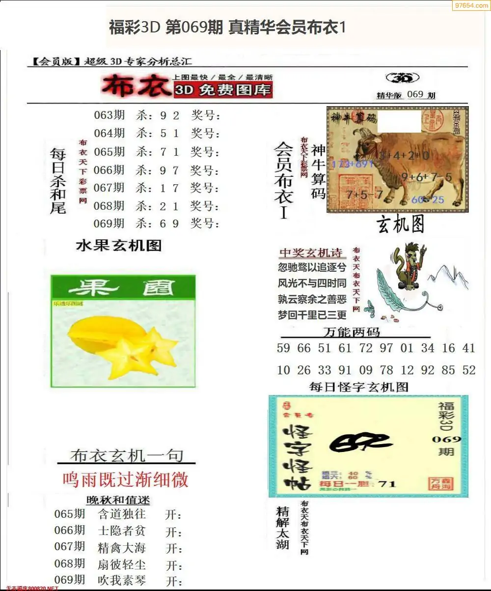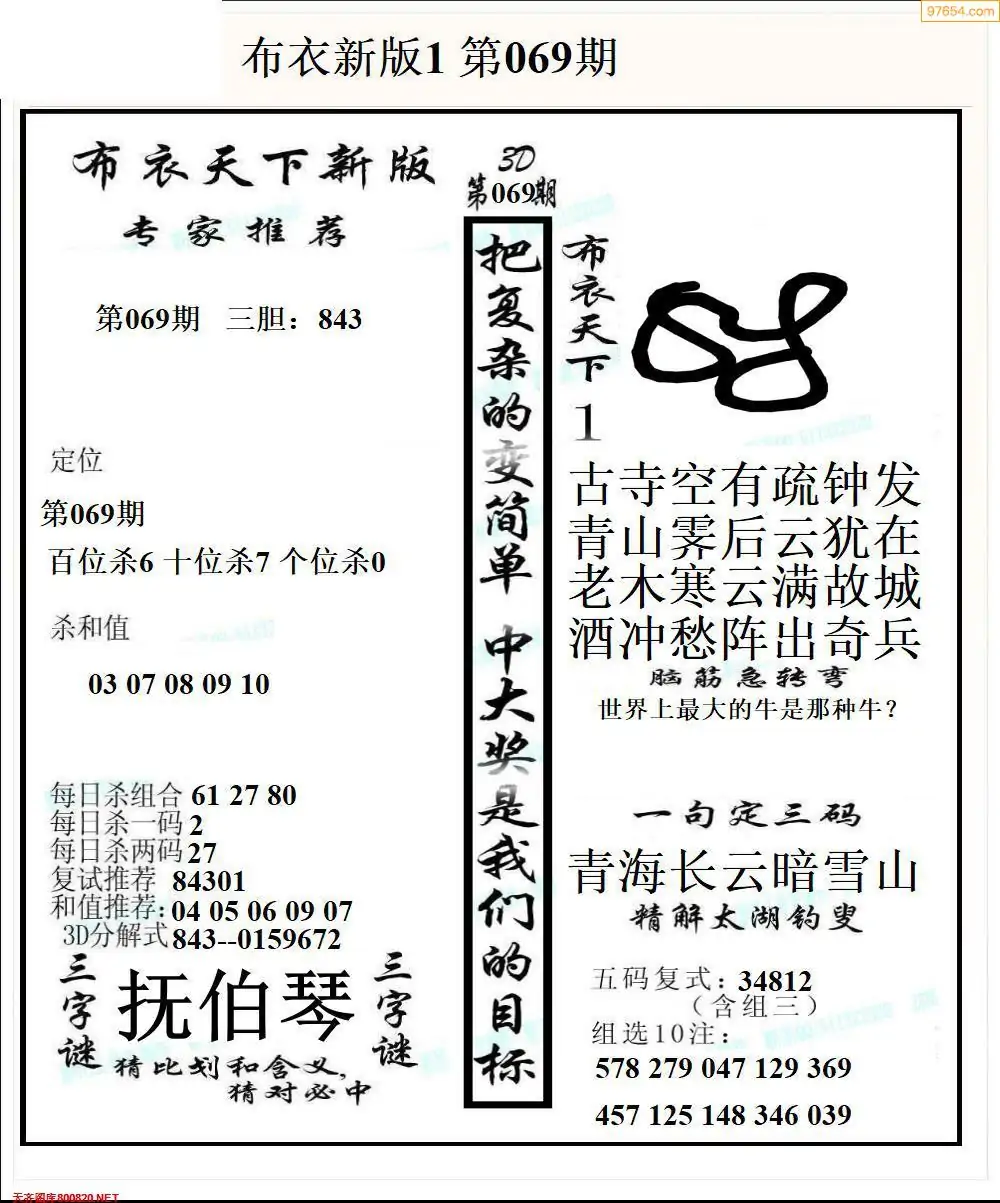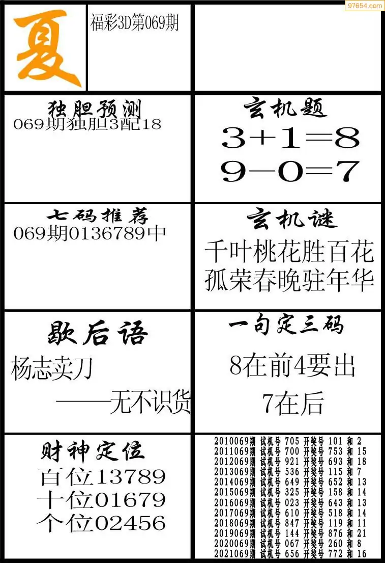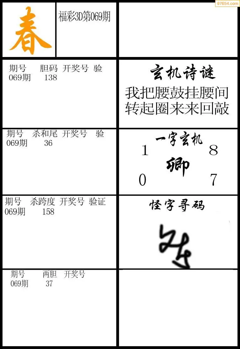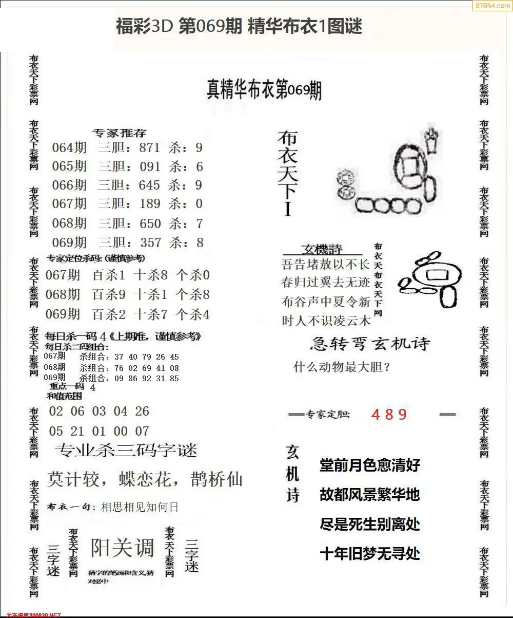 (2)26年069期本期3d图迷汇总_福彩3D图谜总汇图