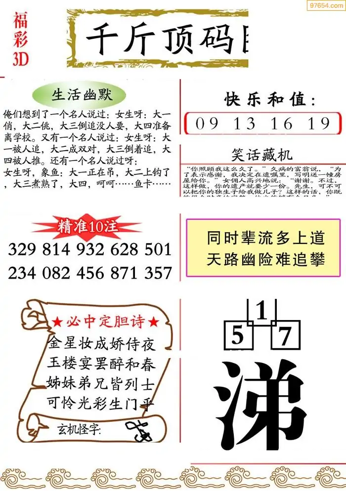 (3)2026068期3D预测总汇全图_福彩3d图谜字谜总汇