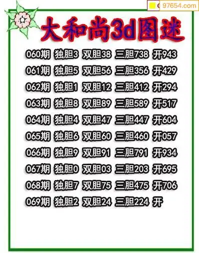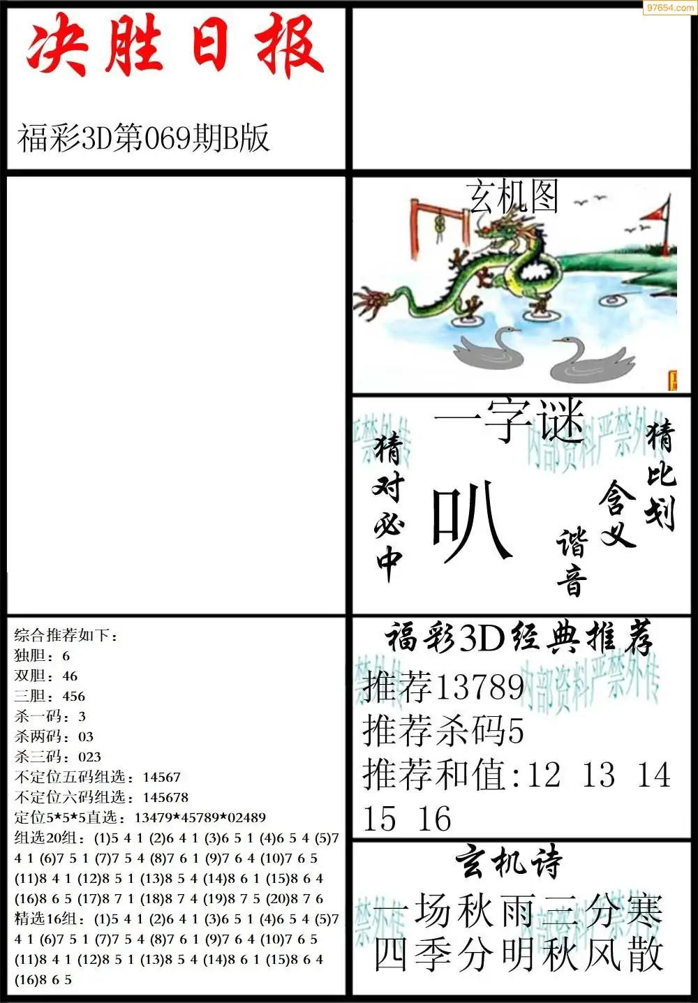 (3)2026069期3D预测总汇全图_福彩3d图谜字谜总汇