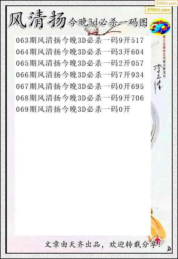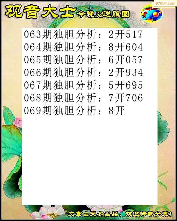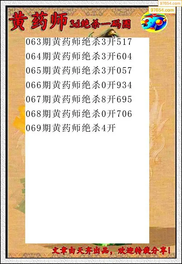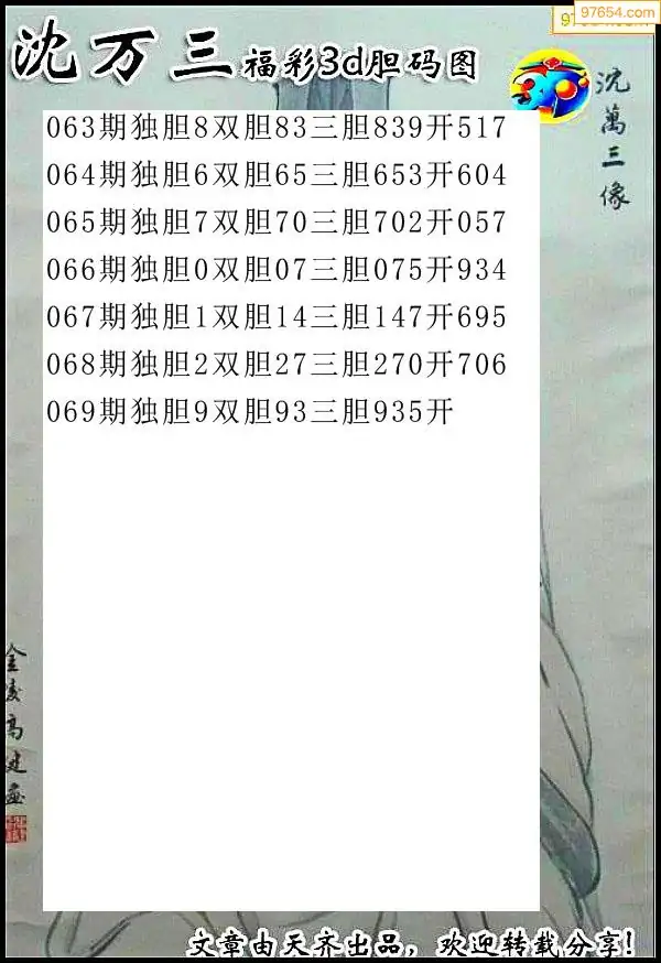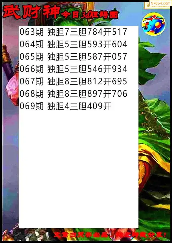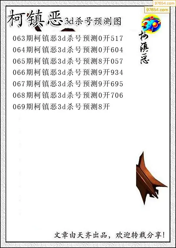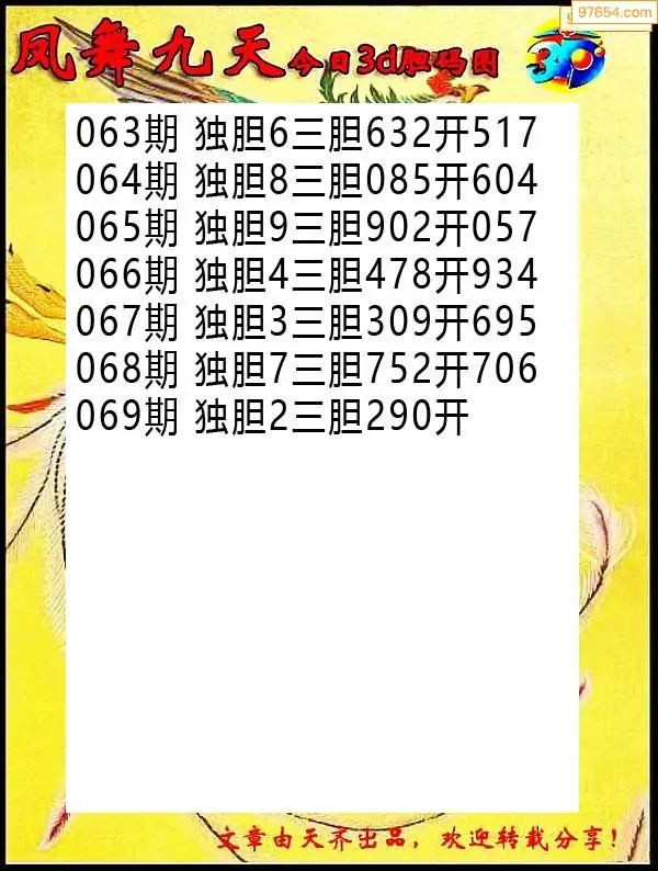 (8)26年069期今日3d各类彩报汇总