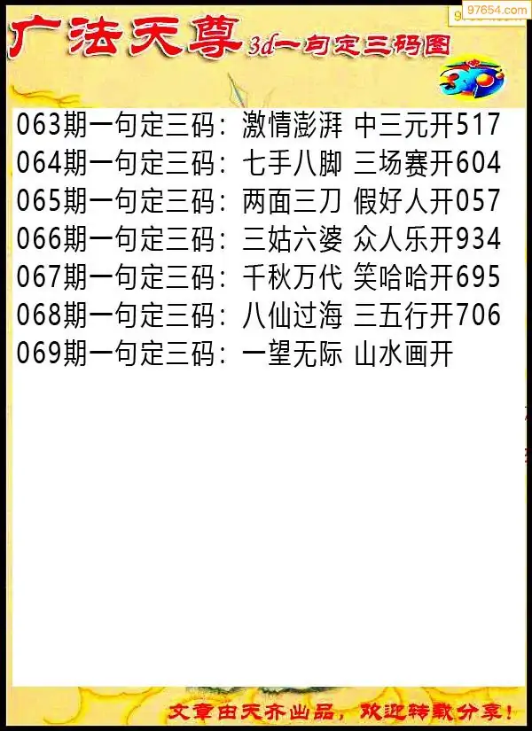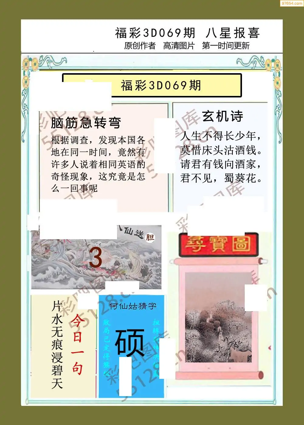 (3)2026069期3D预测总汇全图_福彩3d图谜字谜总汇