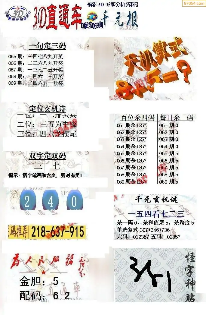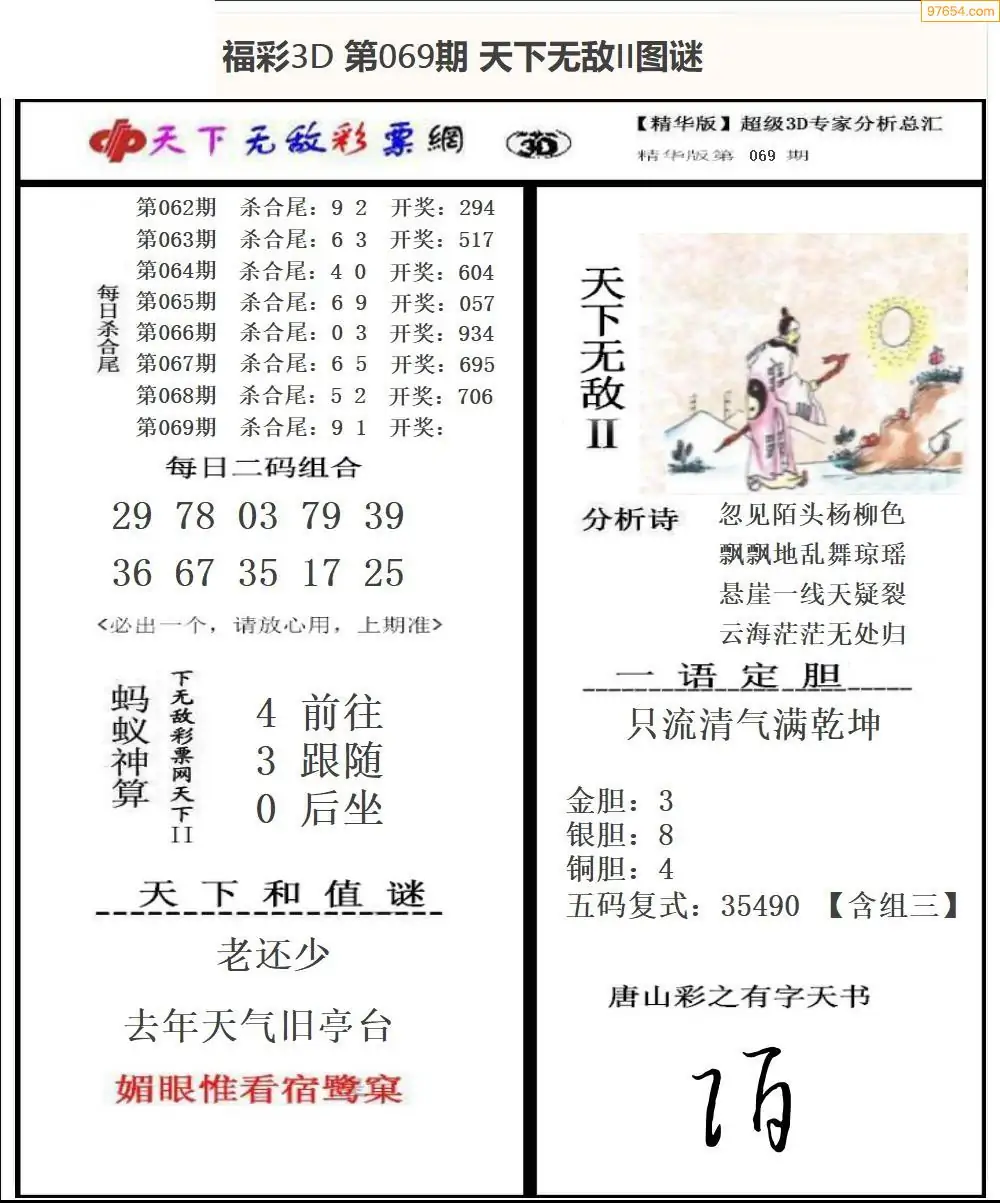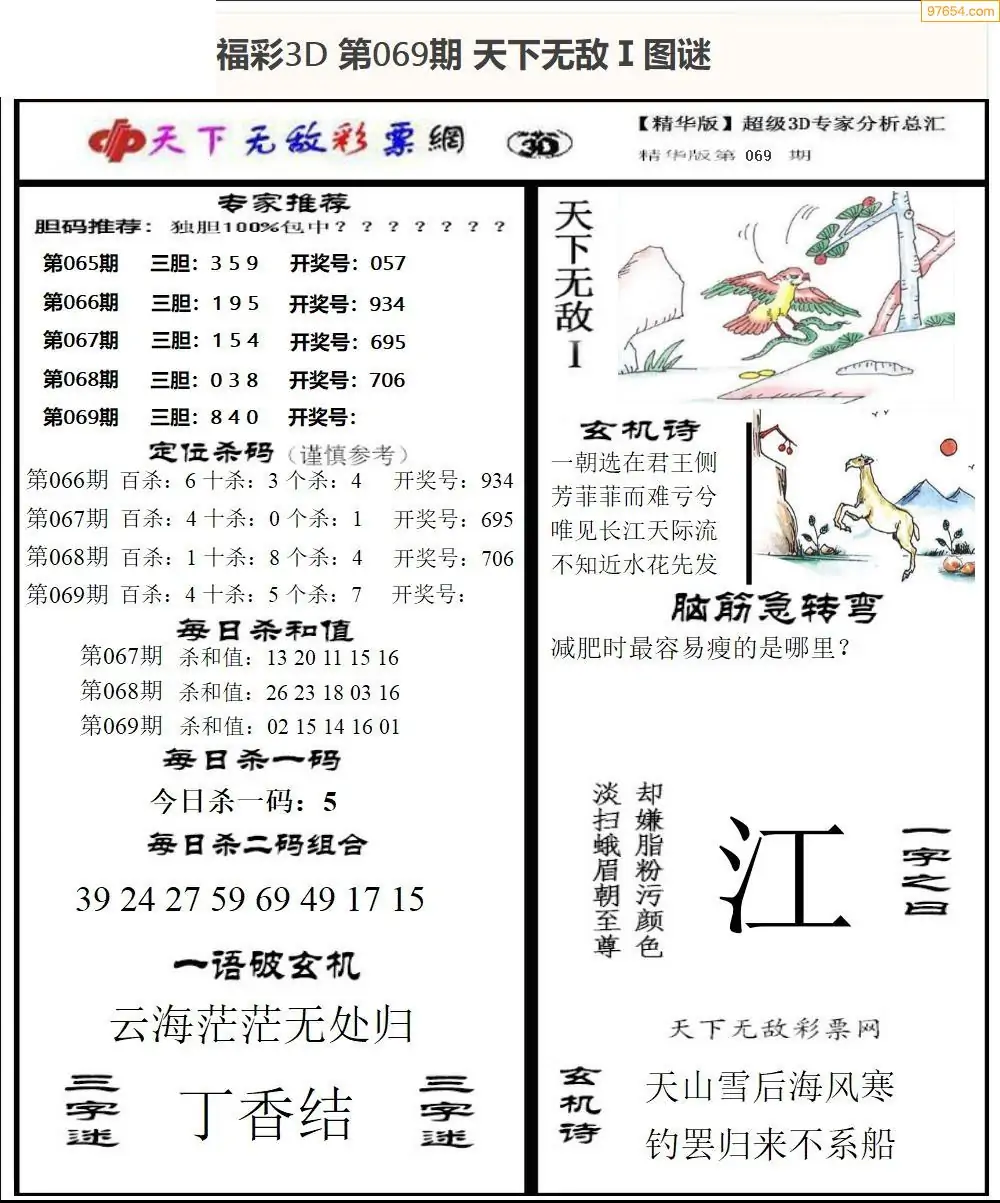26年069期3d选号彩报图谜画谜