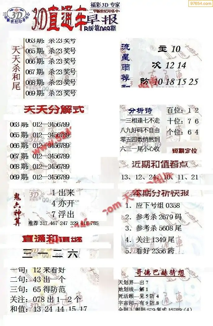 26年069期3D各板块资料整合汇总