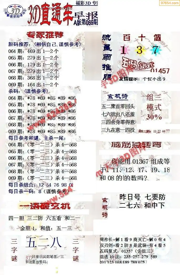 26069期今日3d三毛四版+东盛会员报
