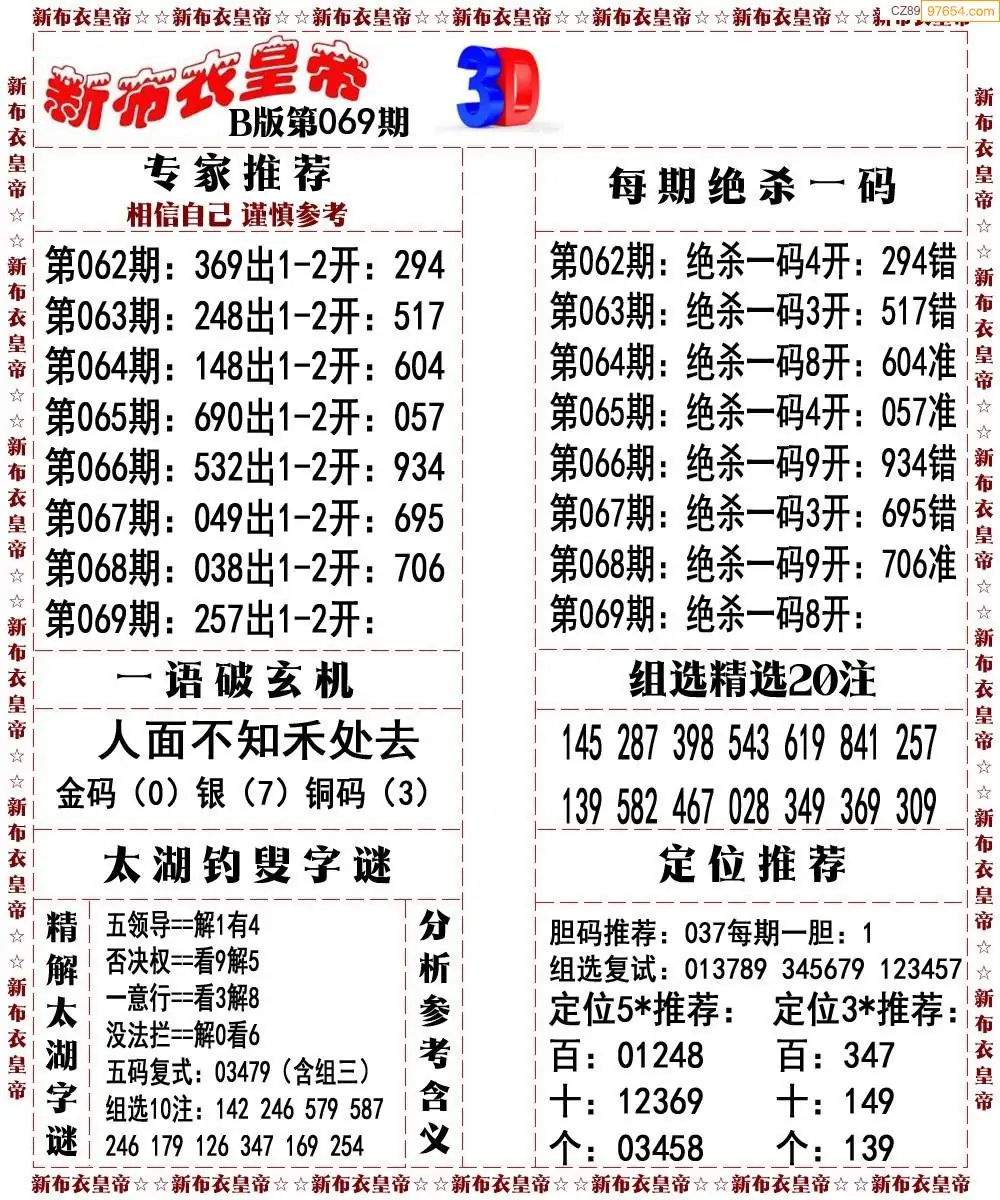 26069期3d新布衣皇帝早间四版