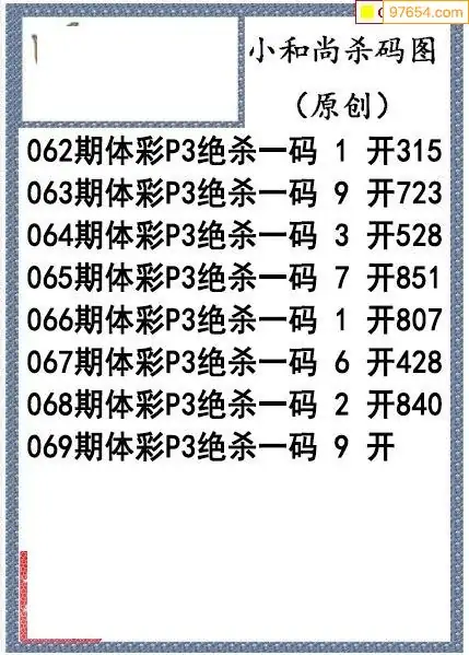 26年069期小和尚排列3杀码图