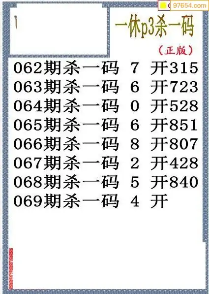 26年069期排列三一休杀码图谜