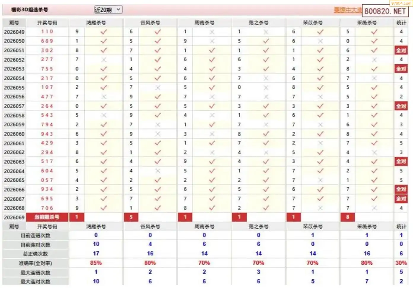 胡八一3d26年069期杀号一胆 6连中