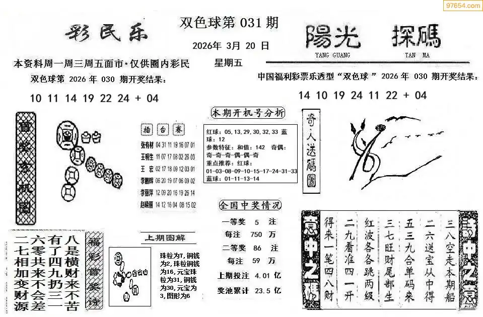 26年双色球031期彩民乐+阳光探码图谜