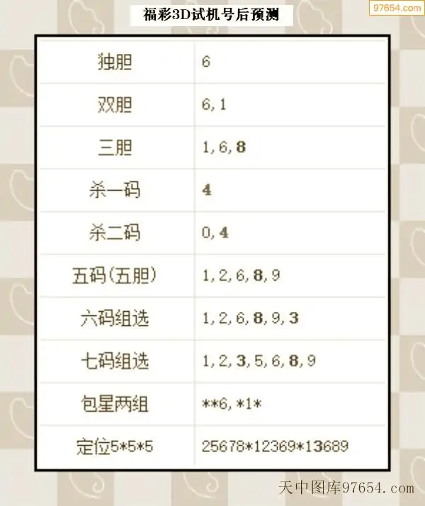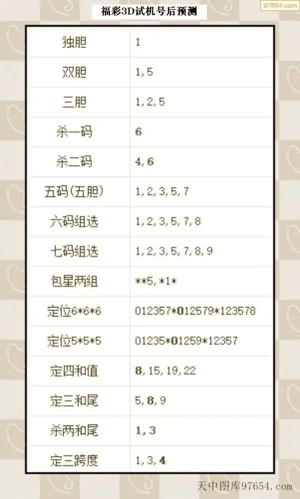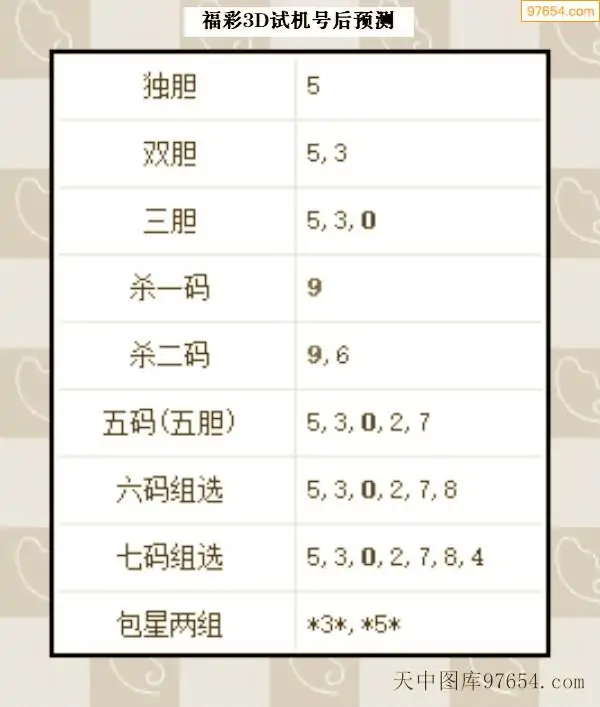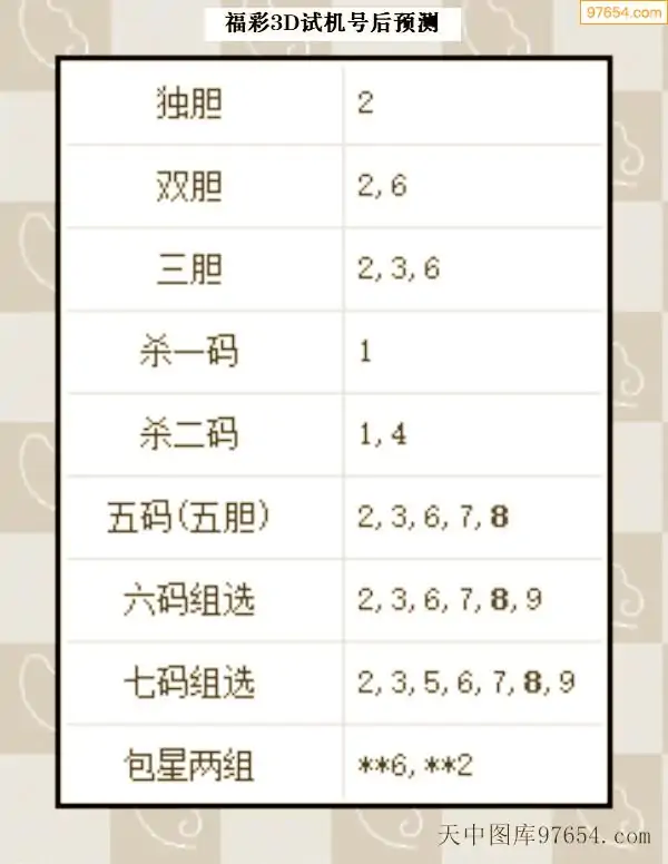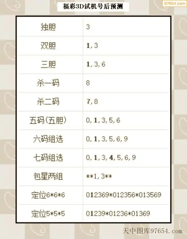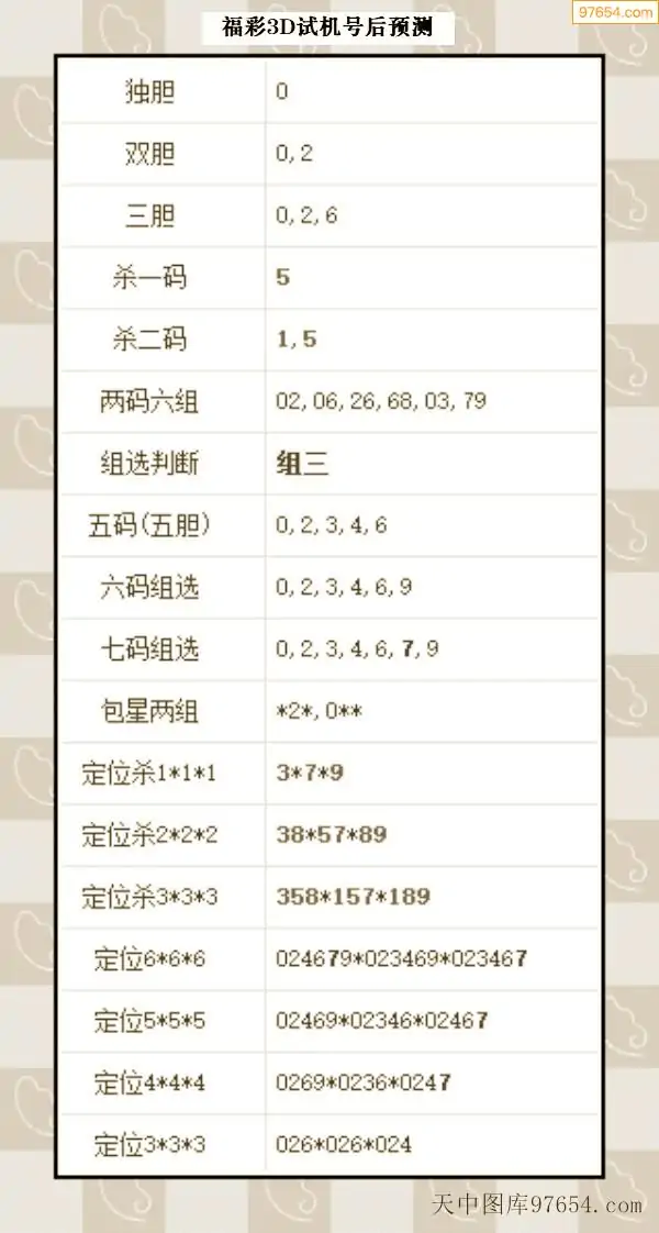 26年068期3d试机号后一语定胆分析汇总