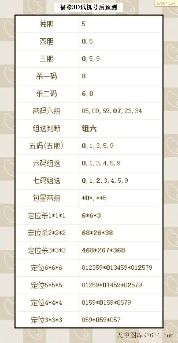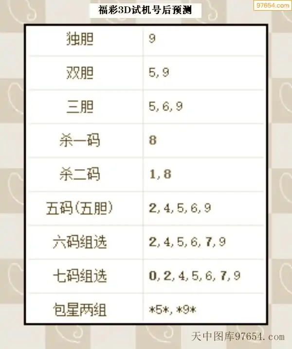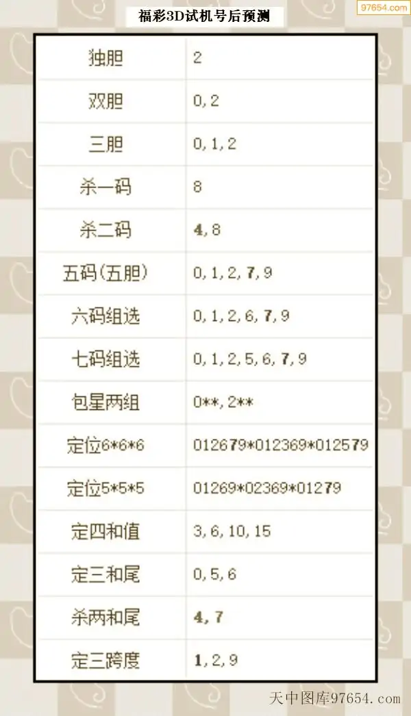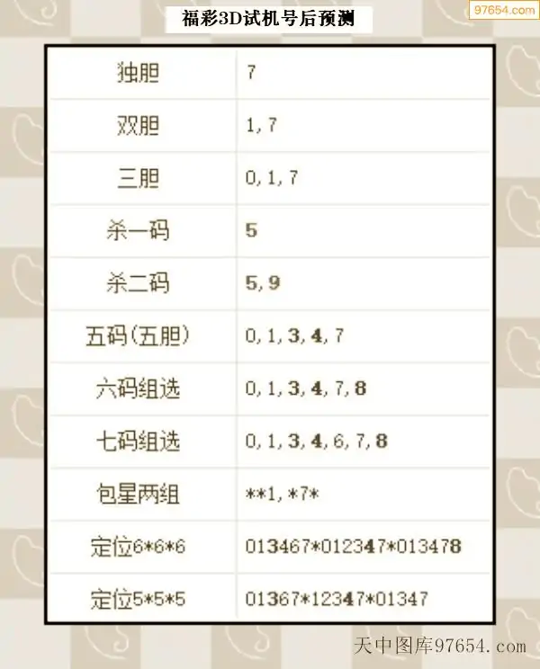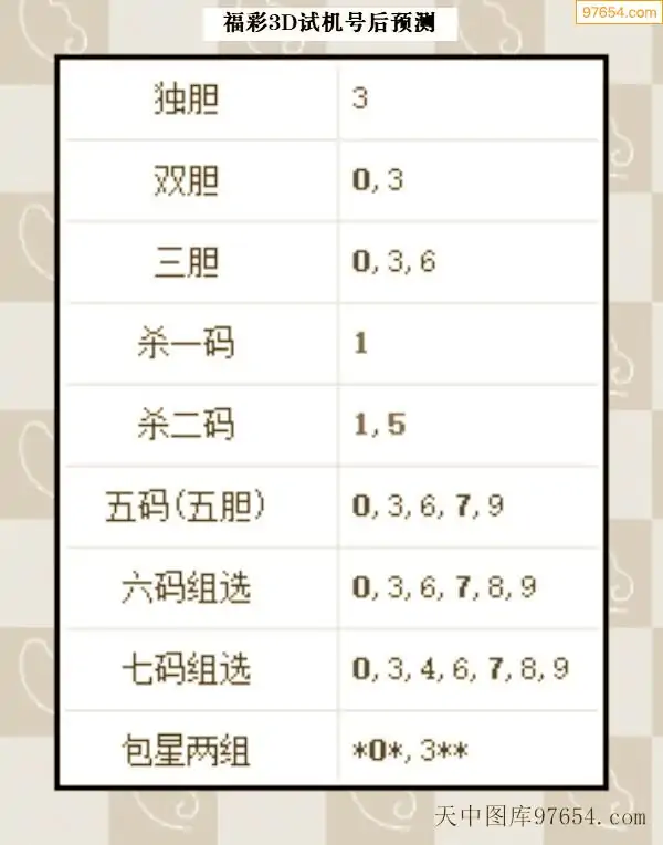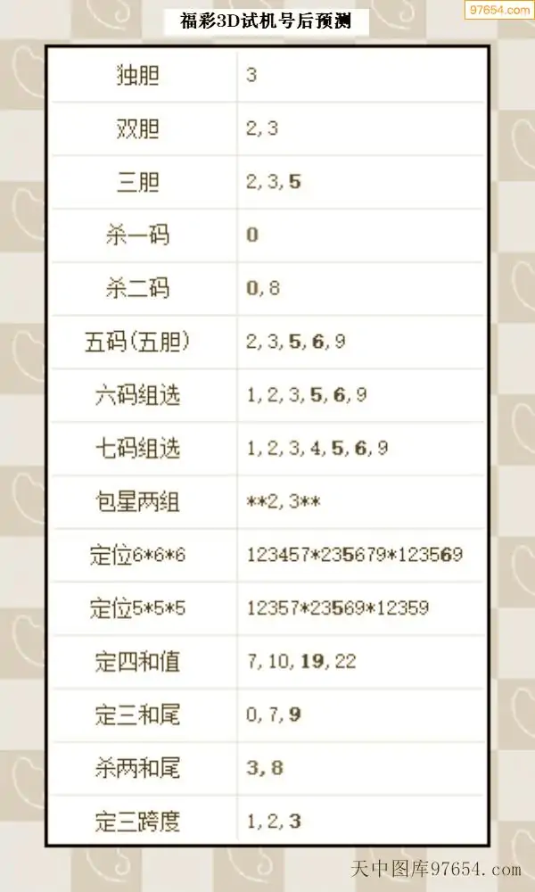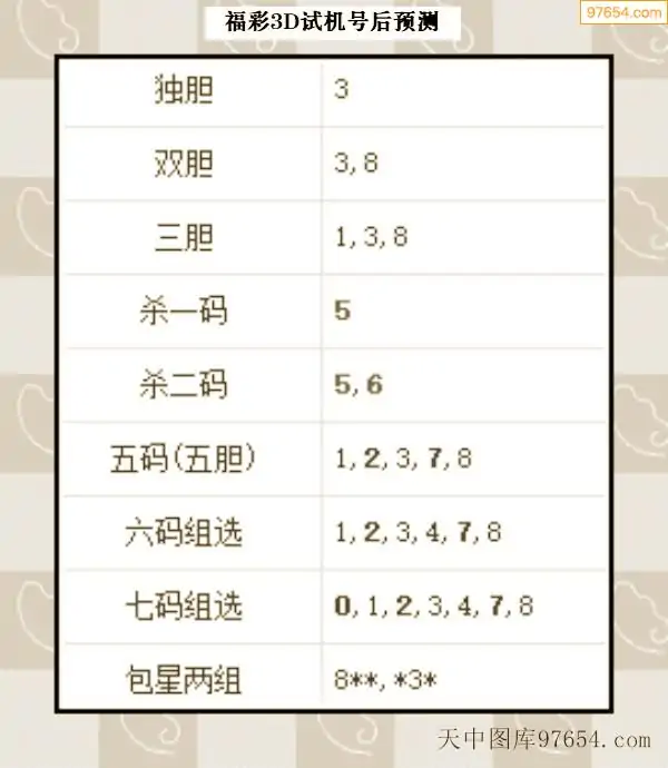 26年068期天中图库专家3D试机号后分析汇总
