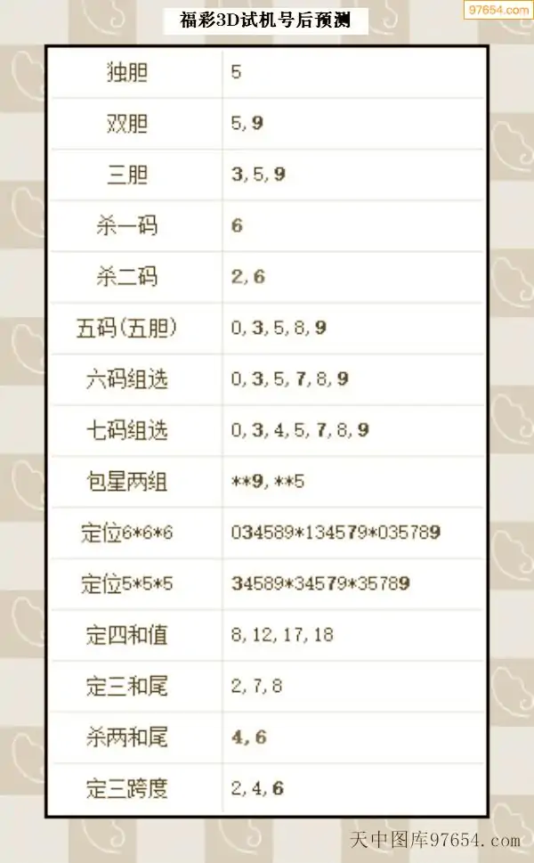 26年068期3d试机号后晚间字谜汇总