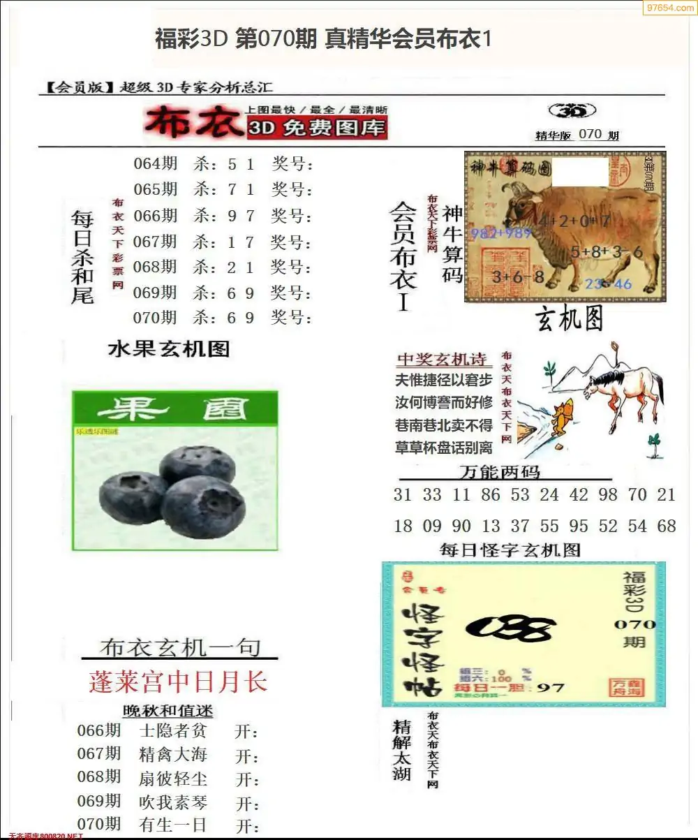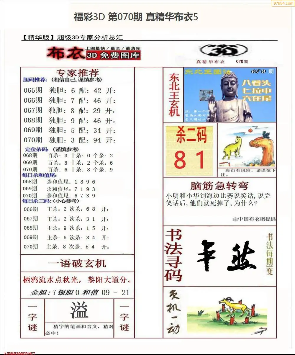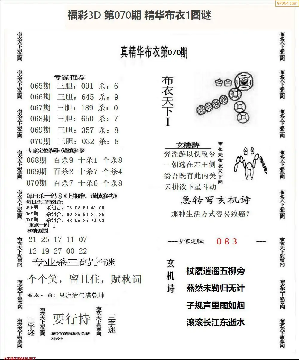 福彩071期3d真精华布衣+布衣早报(转载)
