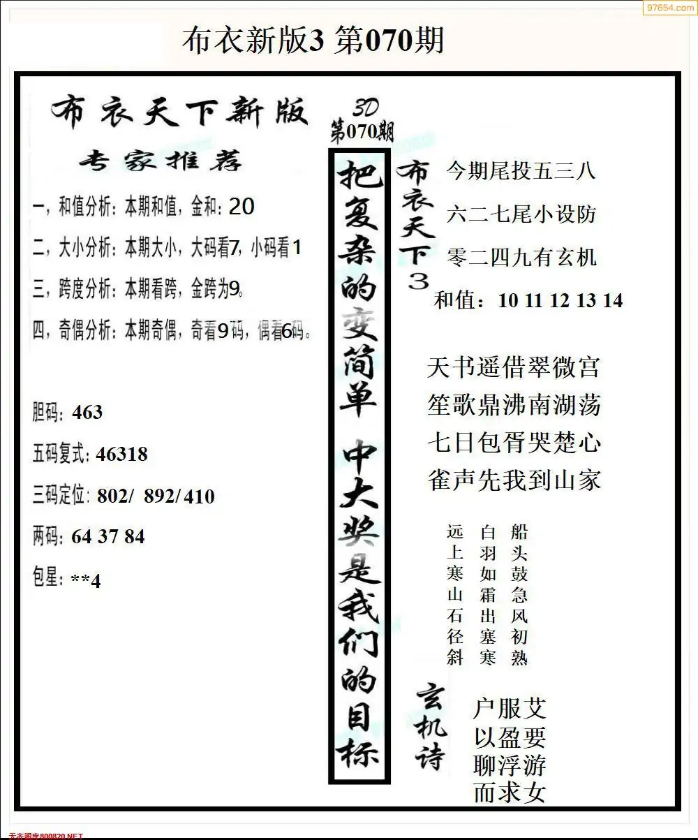 福彩071期3d真精华布衣+布衣早报(转载)