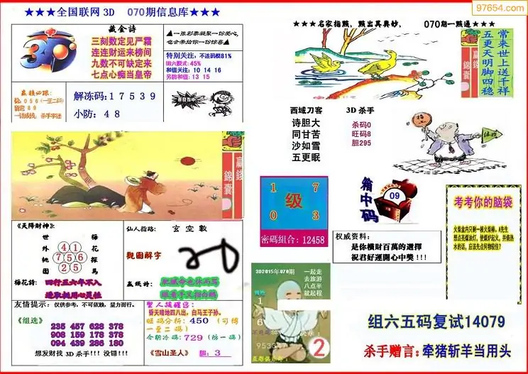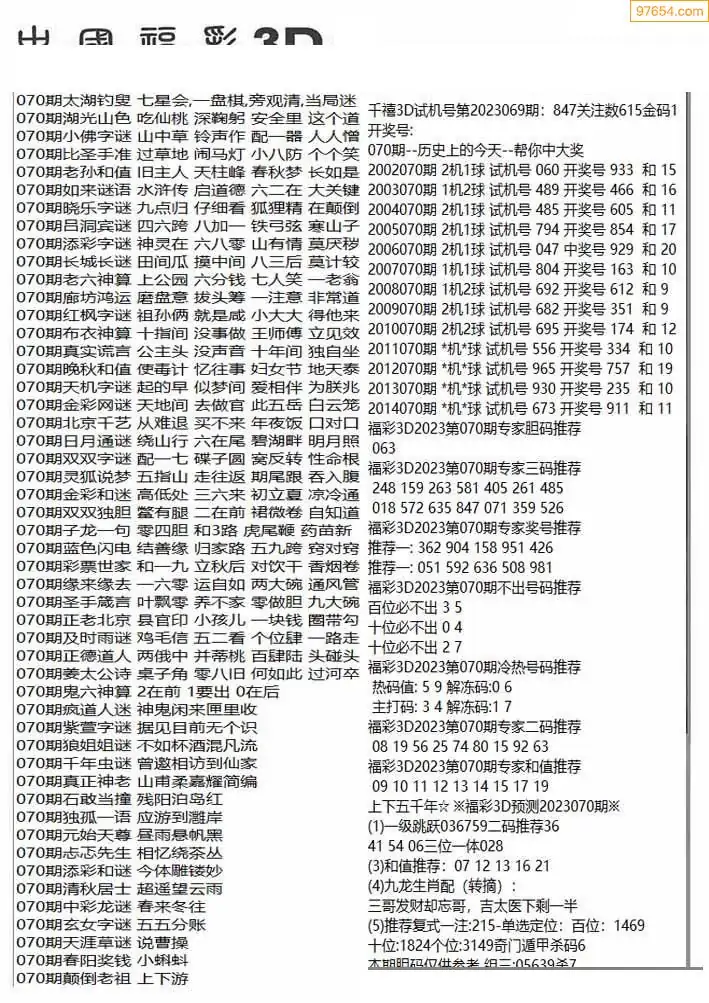 福彩3D070期天牛彩吧套图整合总汇