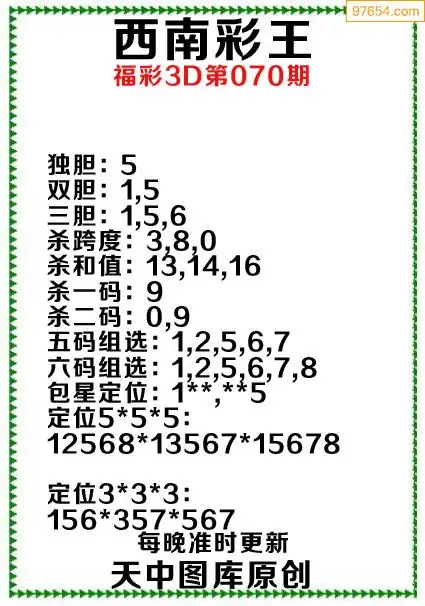 070期原创资料西南彩王当期预测