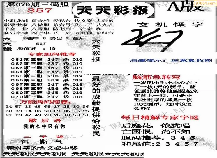 26071期今日3d三毛四版+东盛会员报