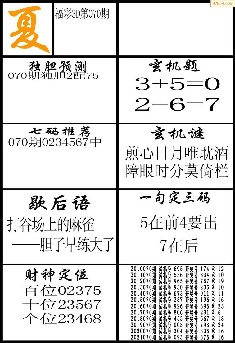 071期天齐3D图库原创综合图四版