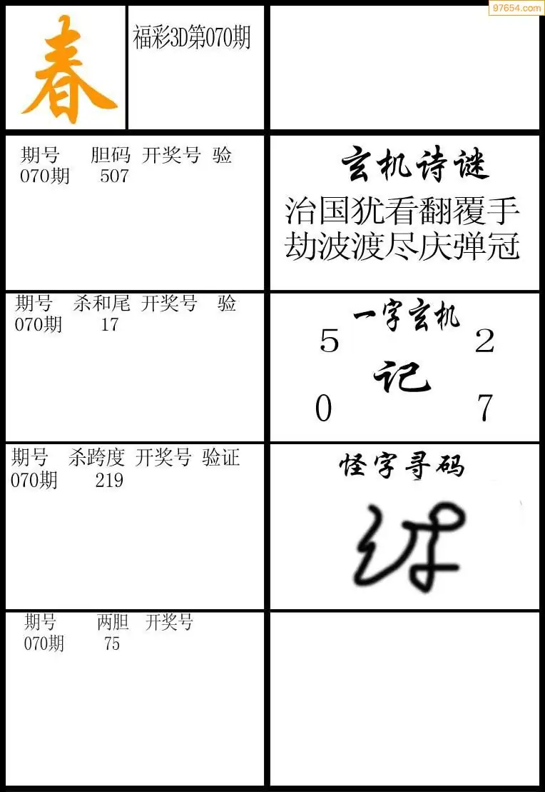 071期福彩天机壁怪字图