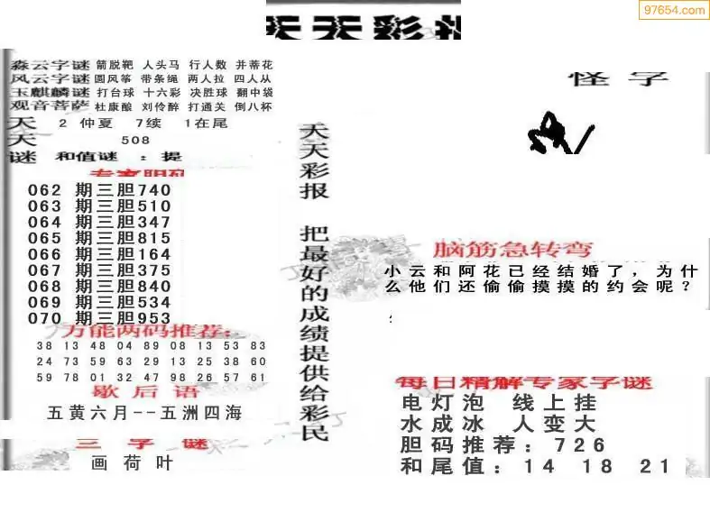 26年071期3d选号彩报图谜画谜