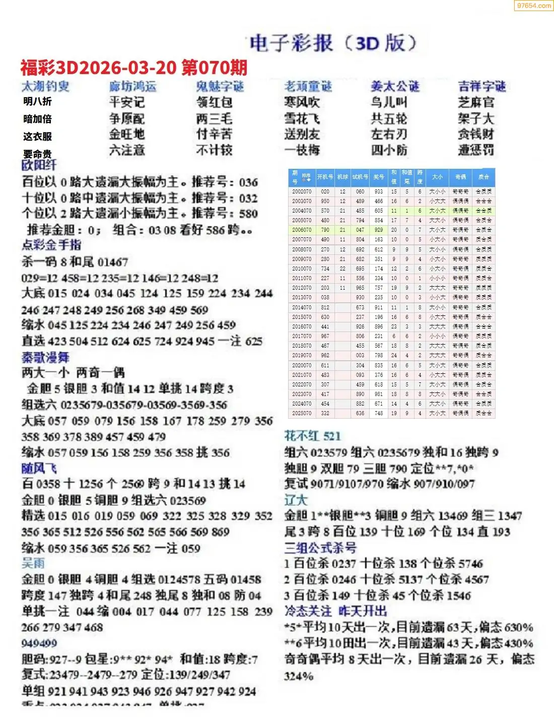 26年070期3D各板块资料整合汇总