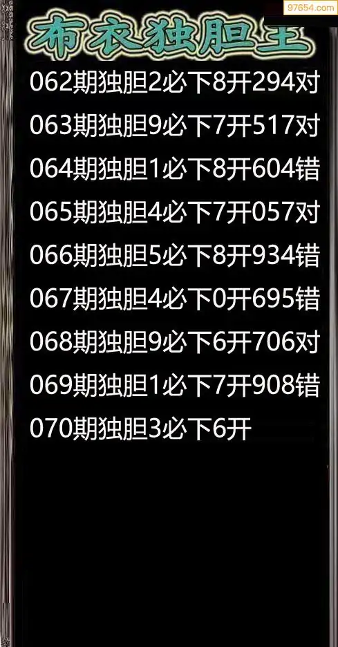 070期97654本站收集胆码出号预测