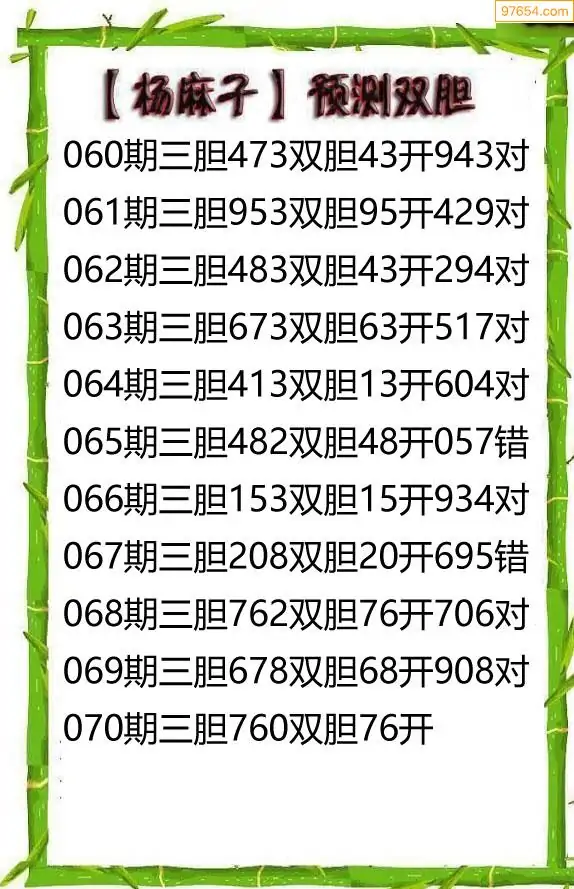 26070期杨麻子_福彩胆码计算方法