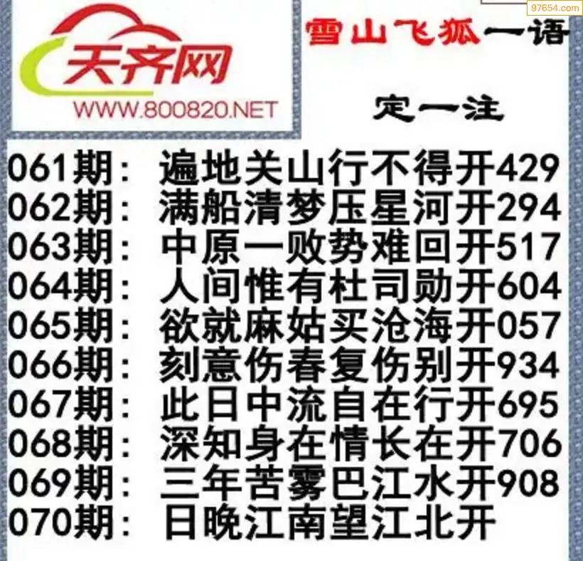 彩票3d字谜070期雪山飞狐一语定一注