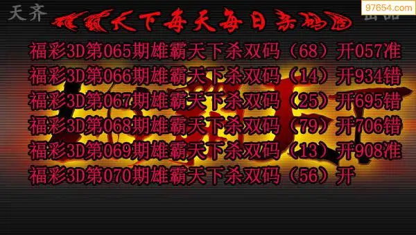 2026069期雄霸天下3D杀双码