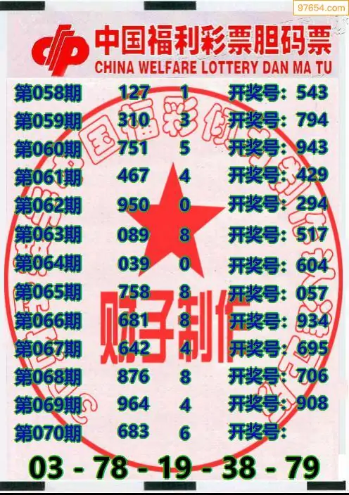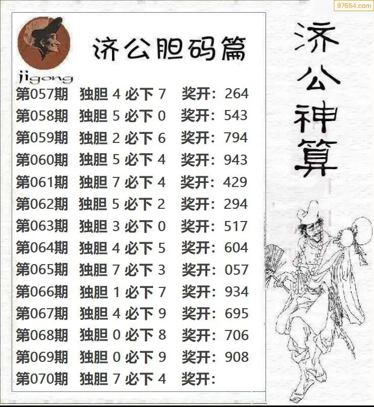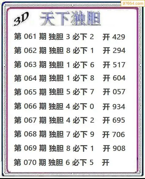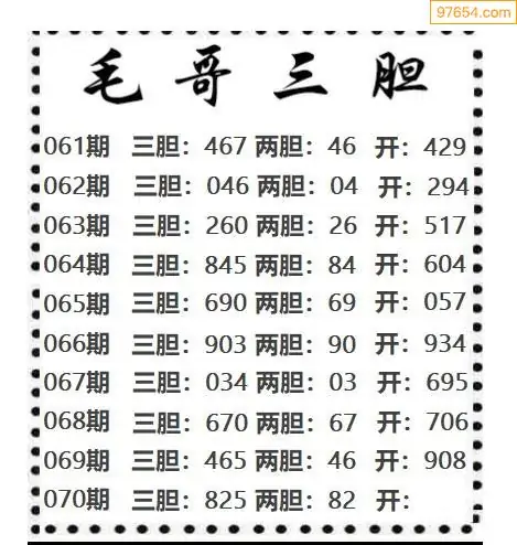 070期97654本站收集胆码出号预测