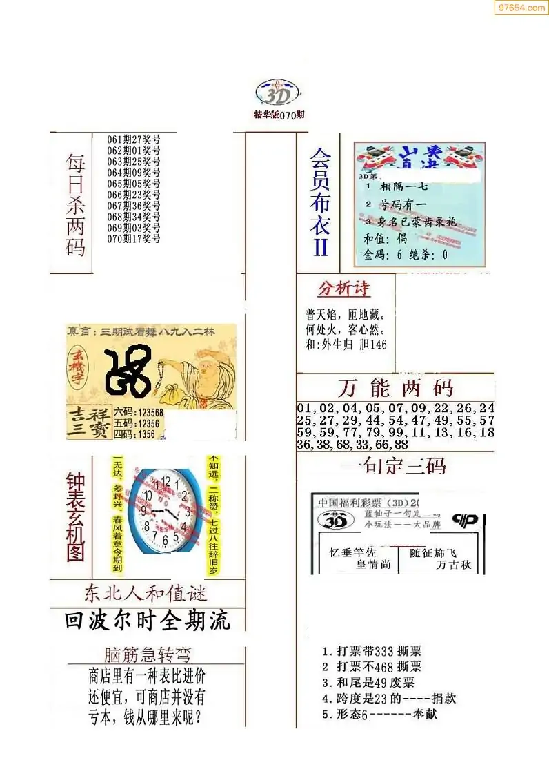 (3)2026070期3D预测总汇全图_福彩3d图谜字谜总汇