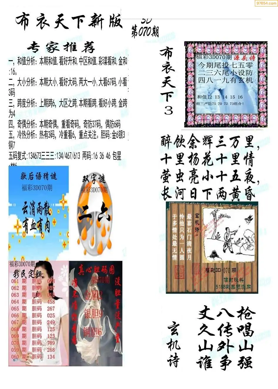 (2)26年070期本期3d图迷汇总_福彩3D图谜总汇图