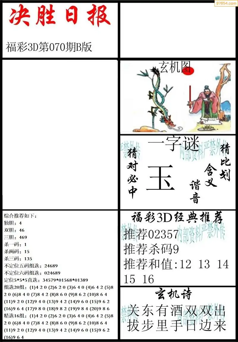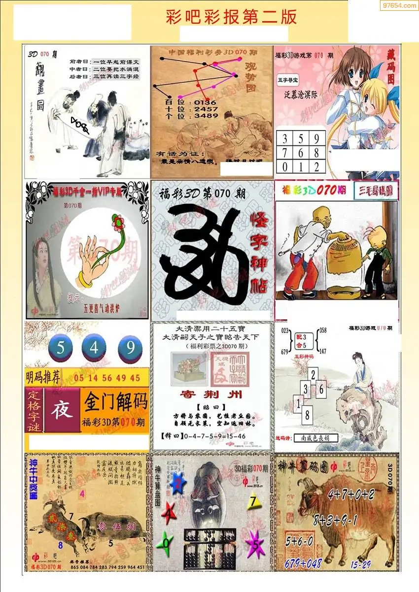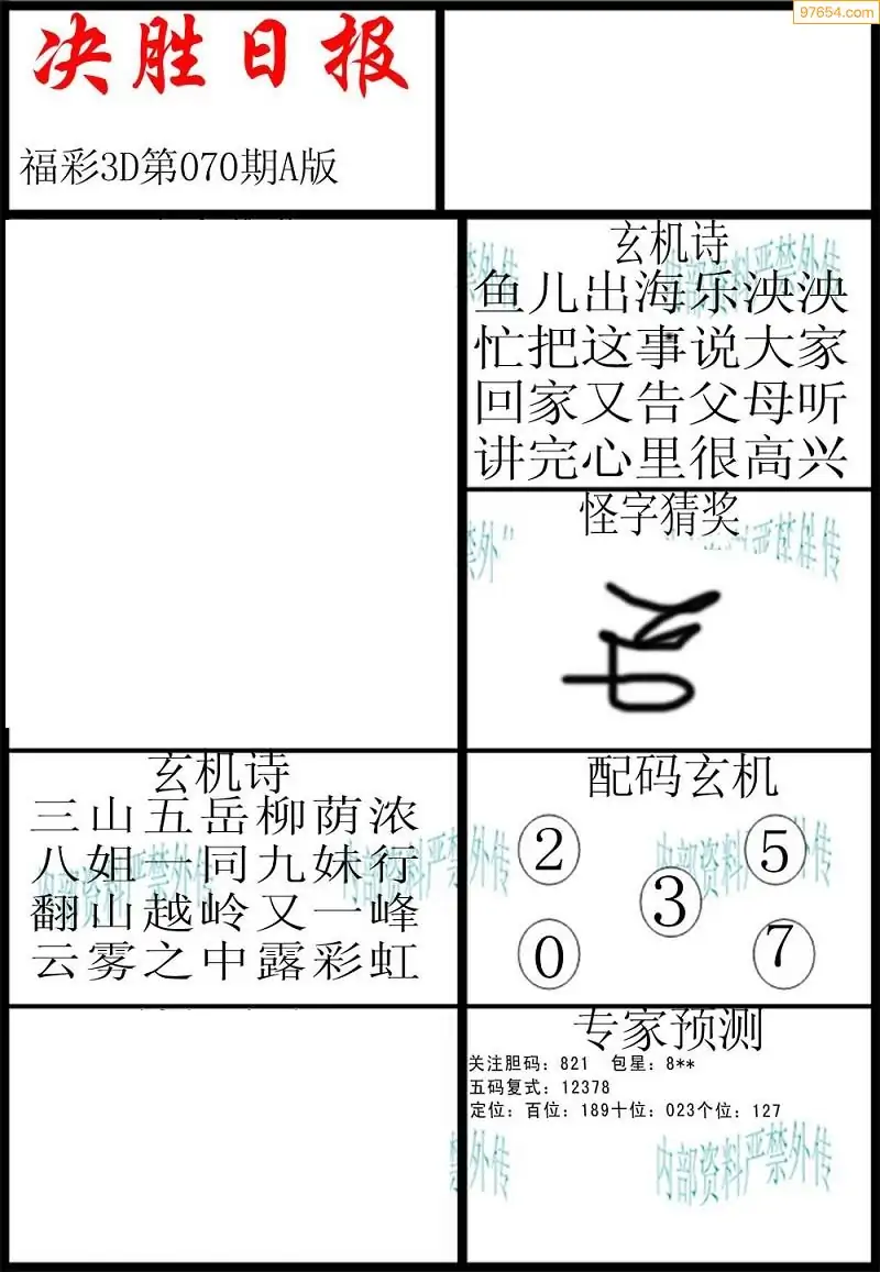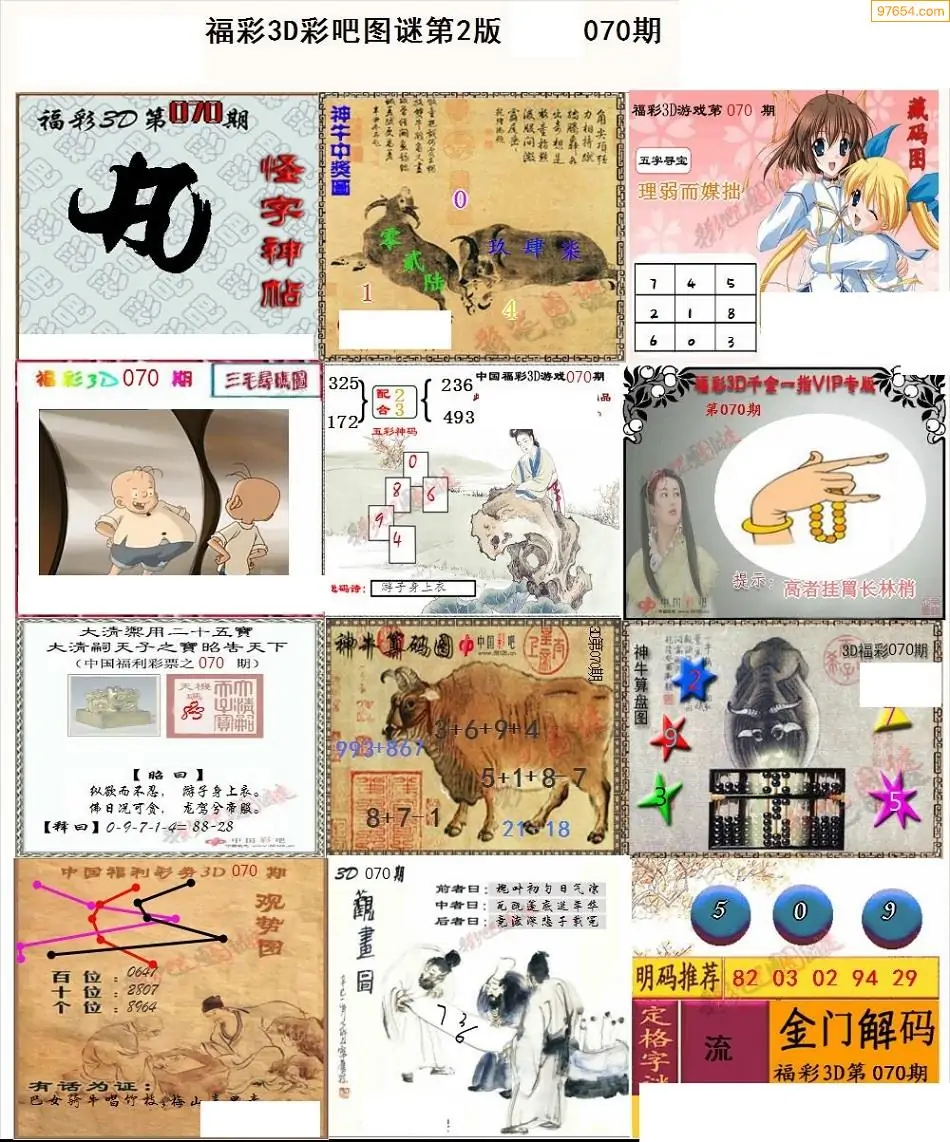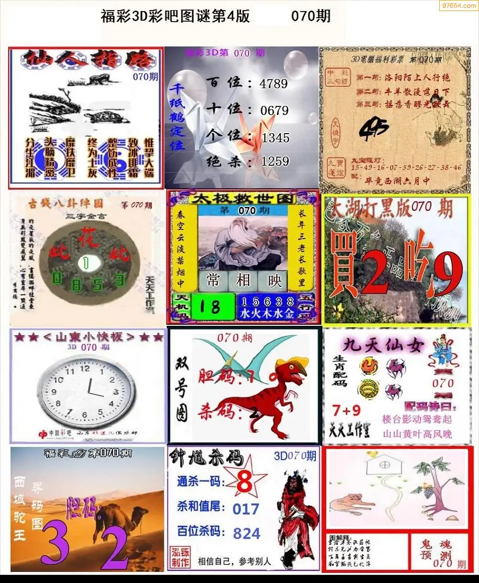 (3)2026070期3D预测总汇全图_福彩3d图谜字谜总汇