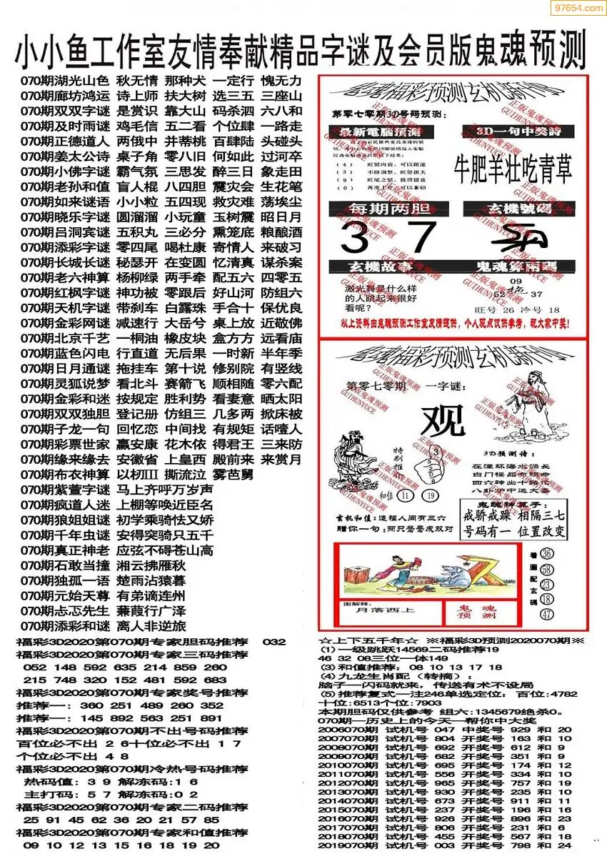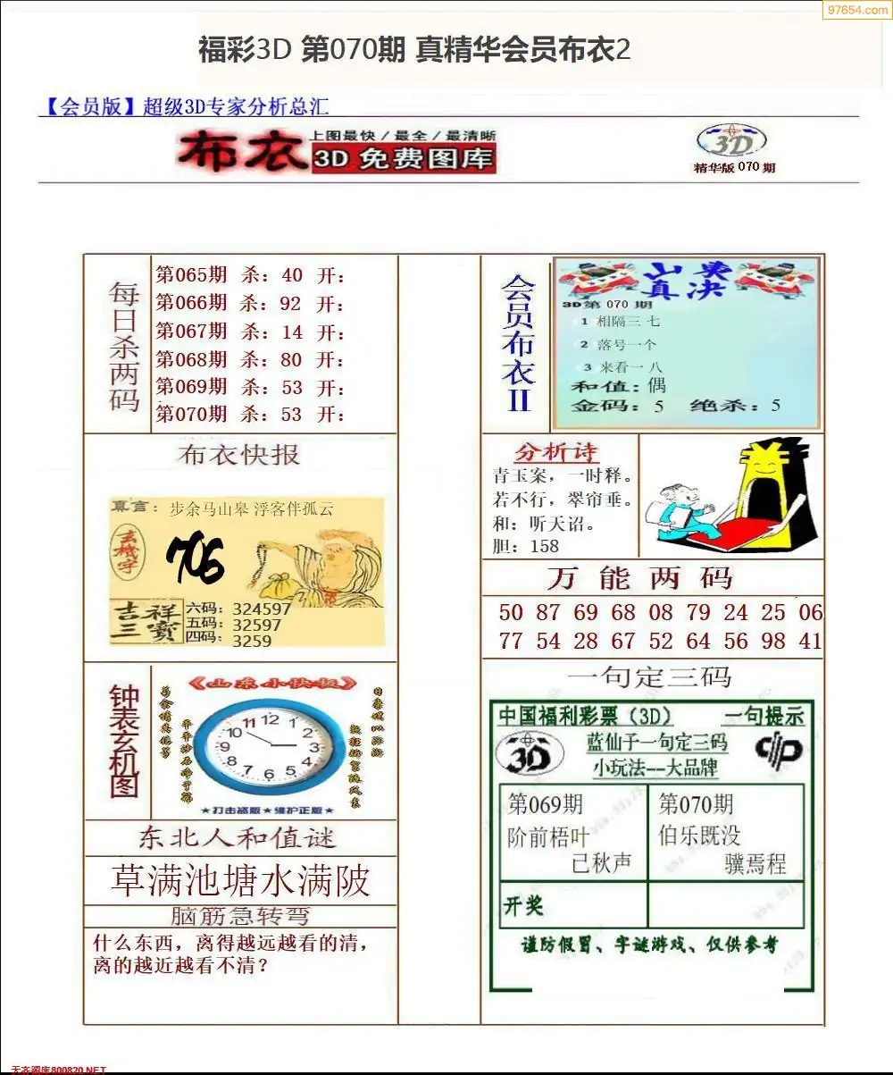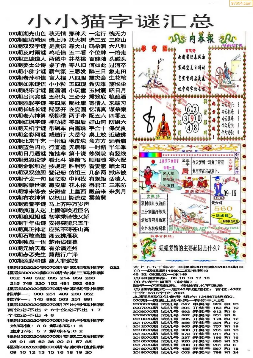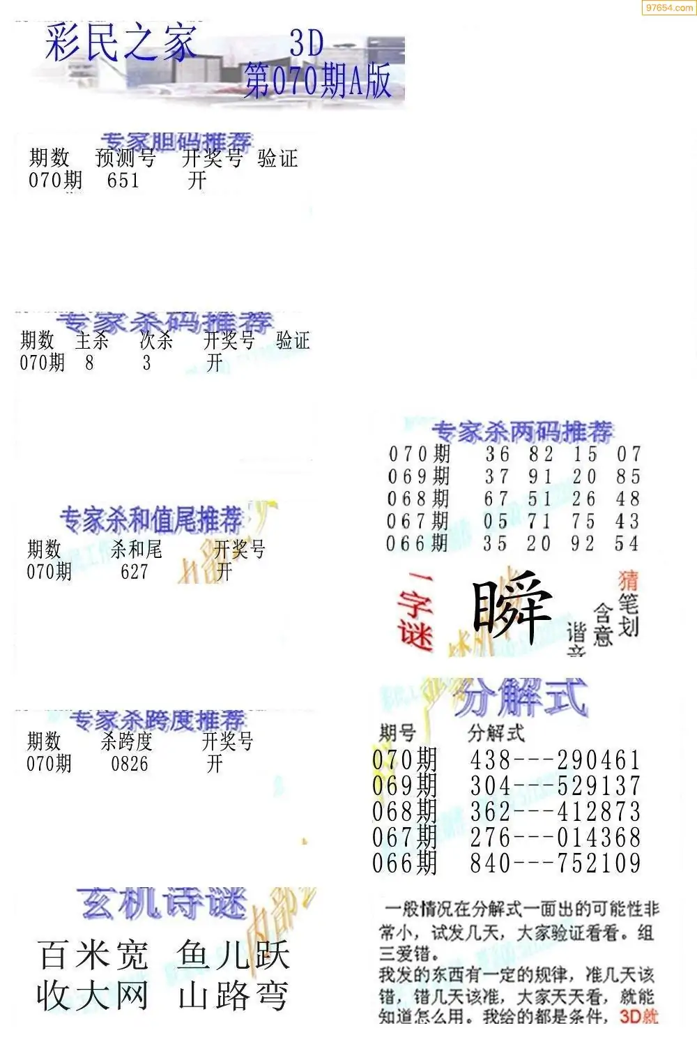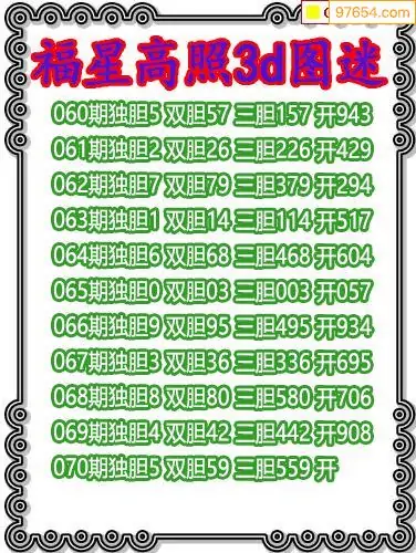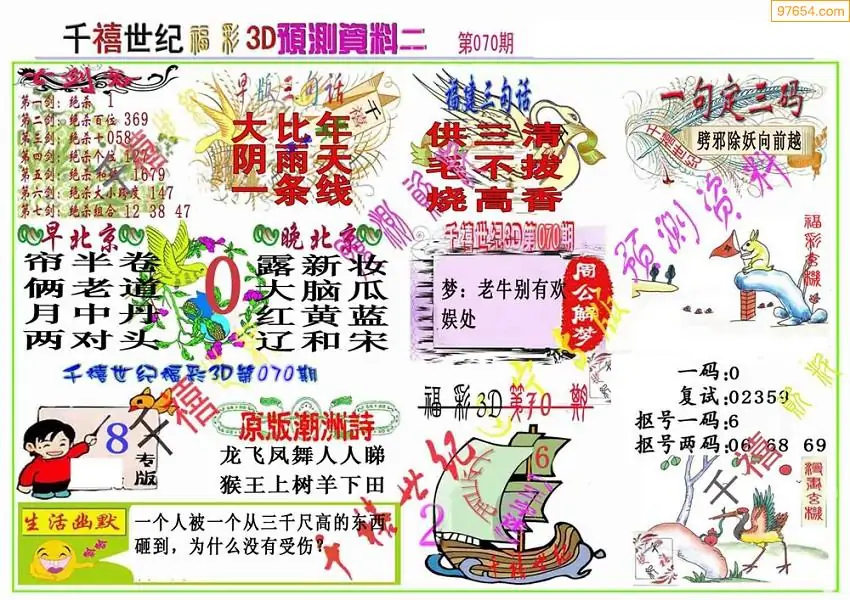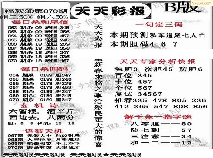 (3)2026070期3D预测总汇全图_福彩3d图谜字谜总汇