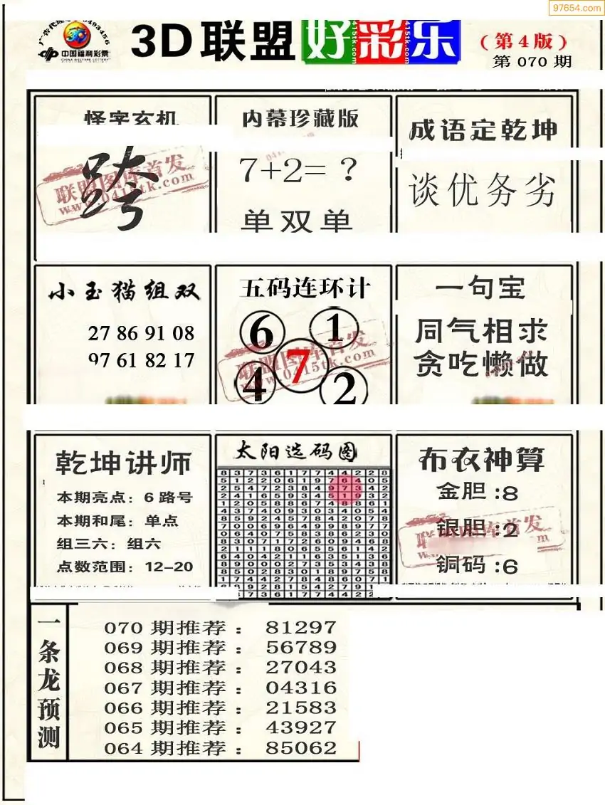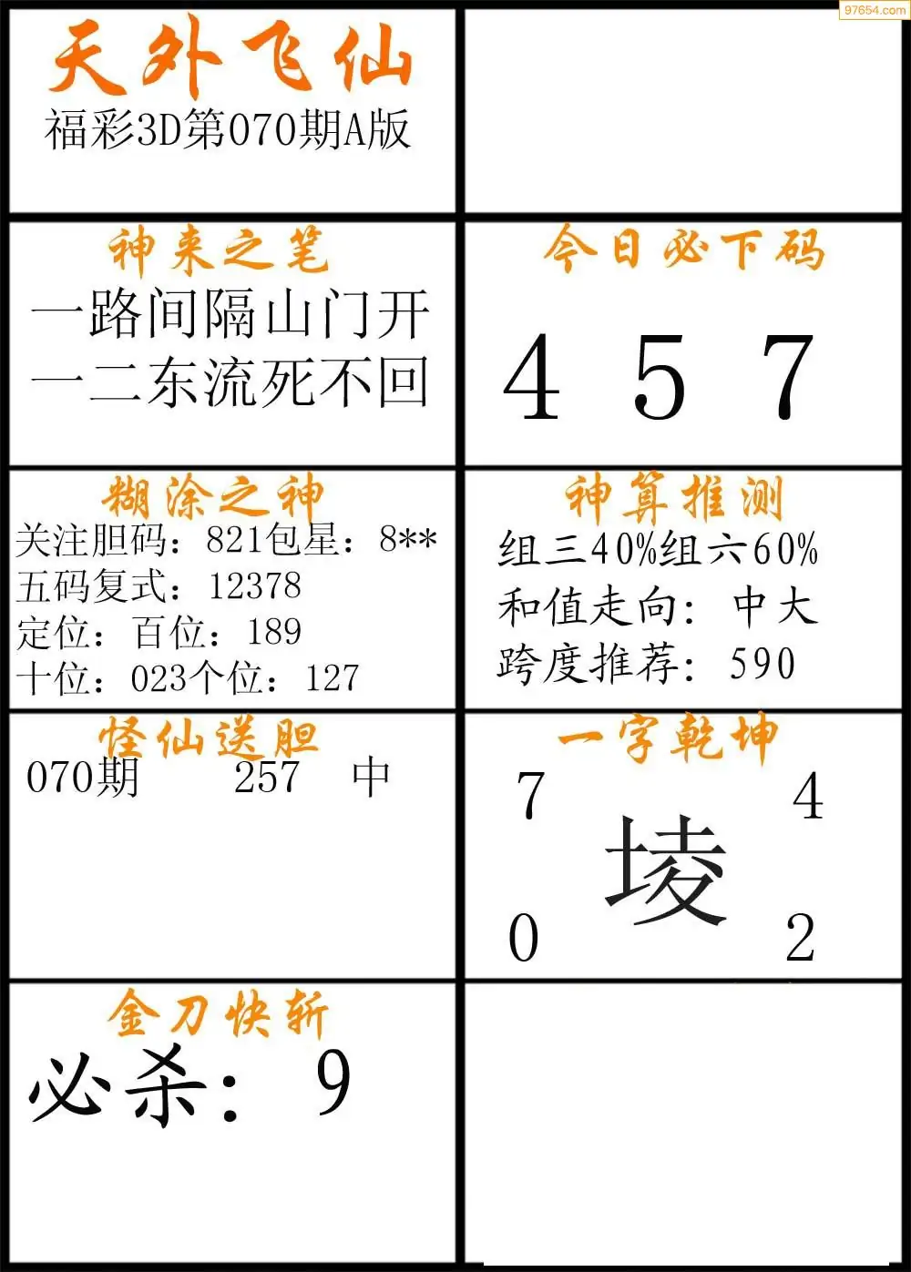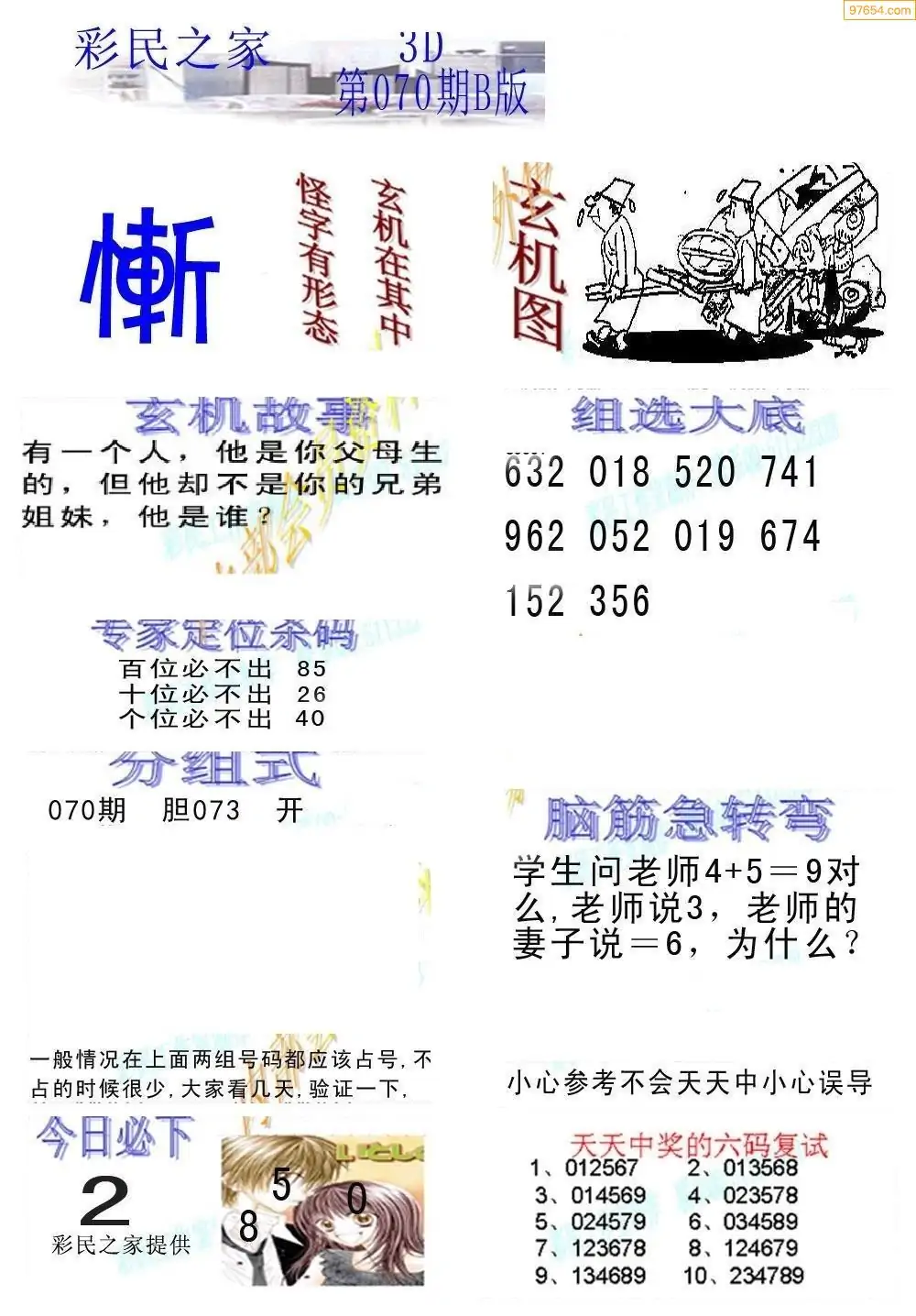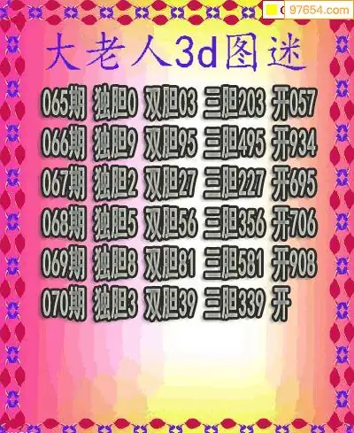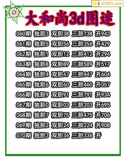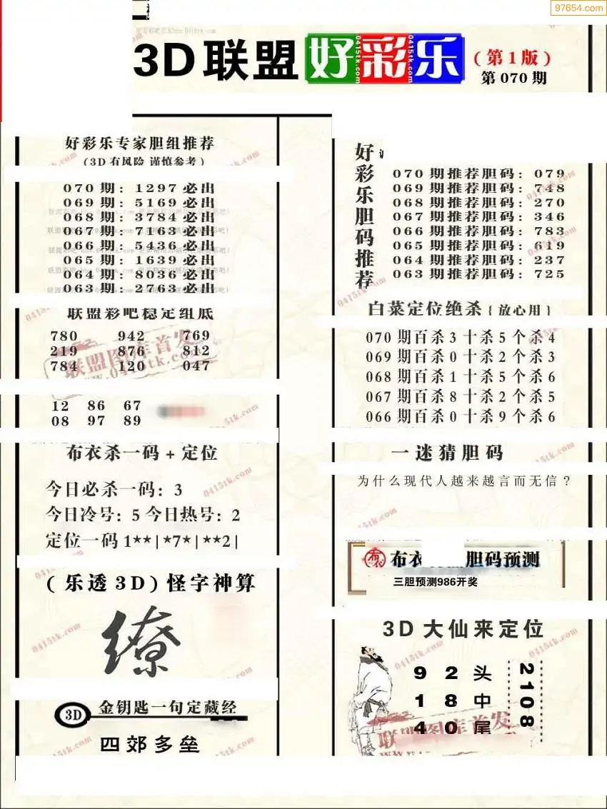 (3)2026070期3D预测总汇全图_福彩3d图谜字谜总汇