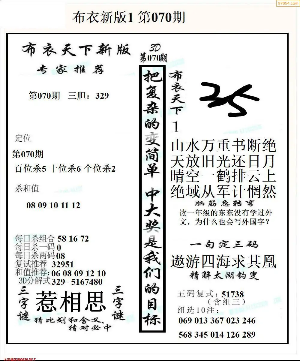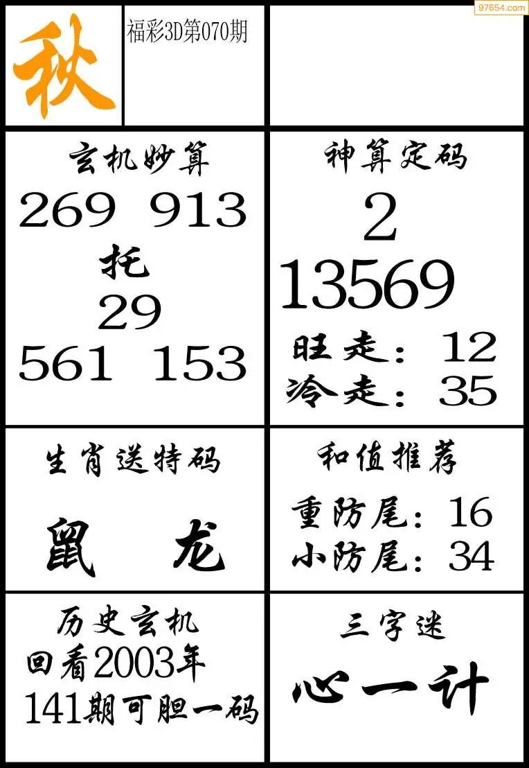 (2)26年070期本期3d图迷汇总_福彩3D图谜总汇图