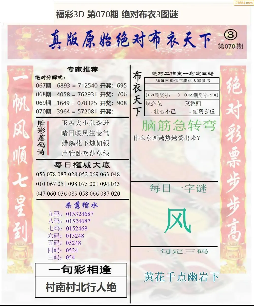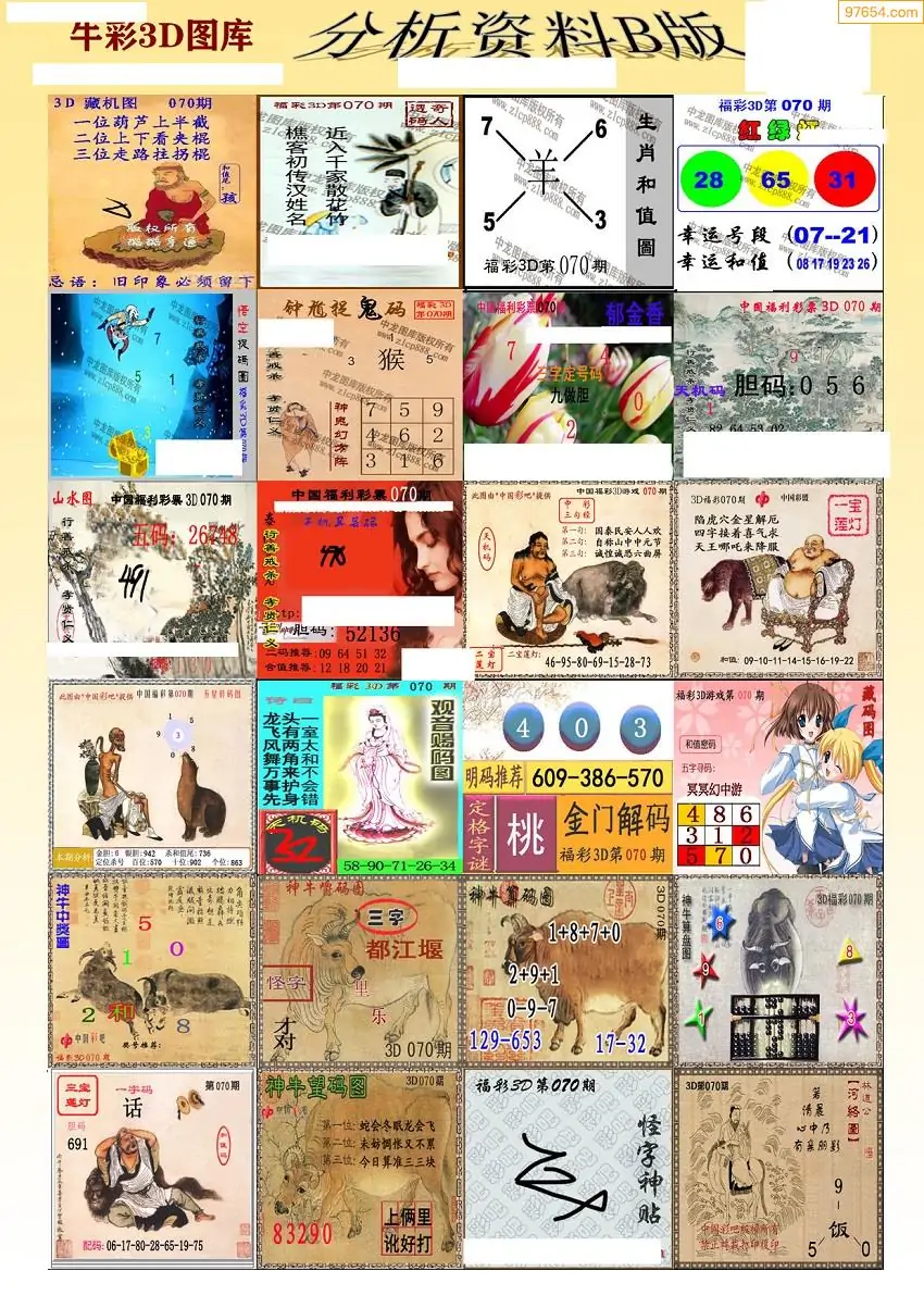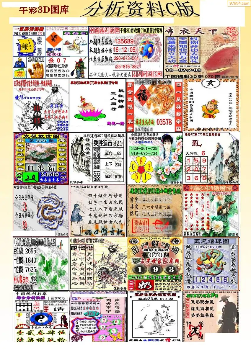 (3)2026070期3D预测总汇全图_福彩3d图谜字谜总汇