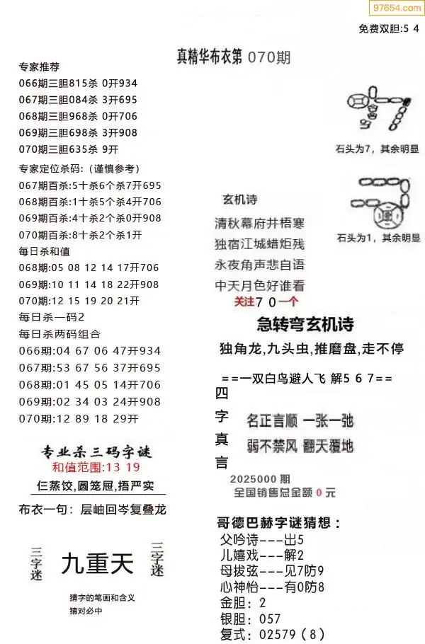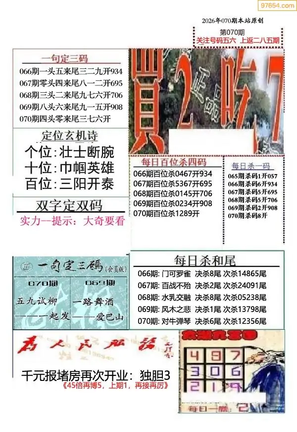 (9)26年070期当期全站杀号定胆图