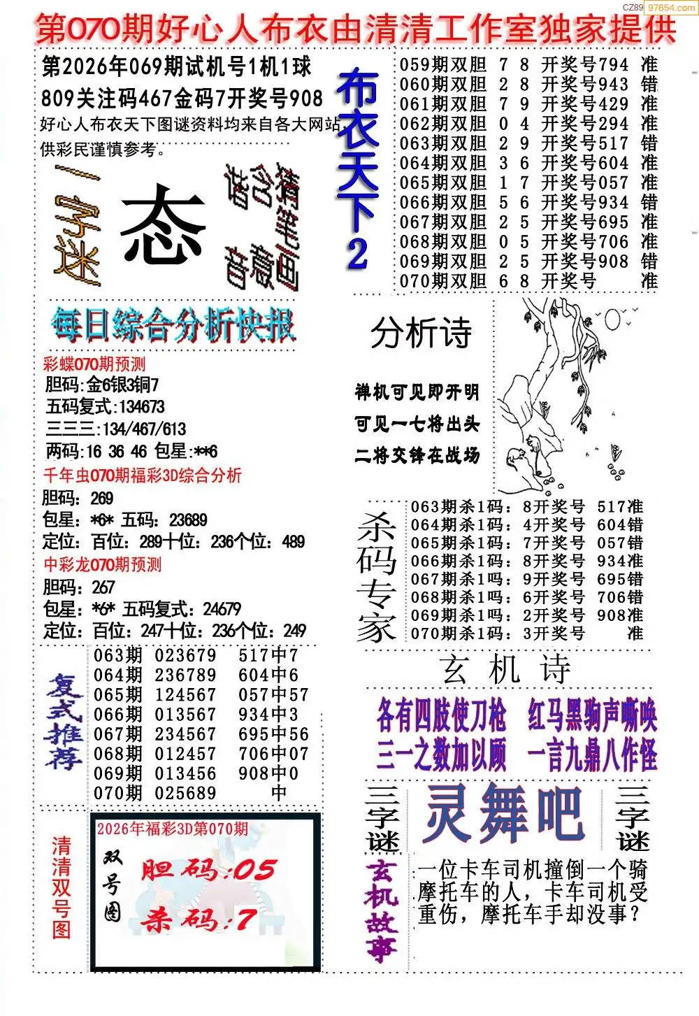 (2)26年069期本期3d图迷汇总_福彩3D图谜总汇图